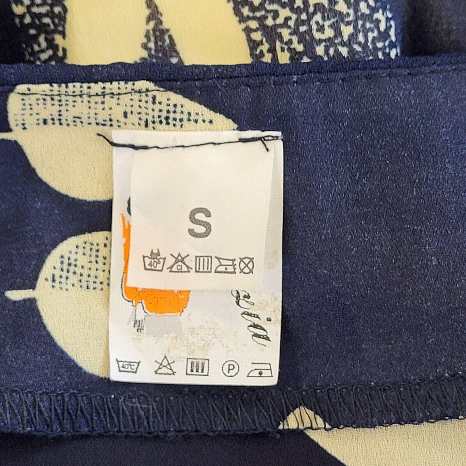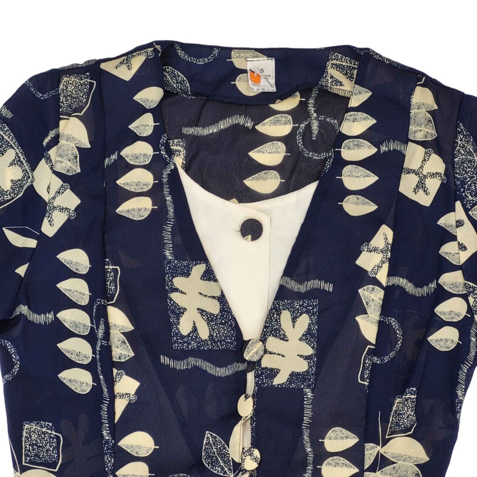 90s Vintage Patizia Blue Leaf Print Buttoned Daywear Dress Womens Size Small.