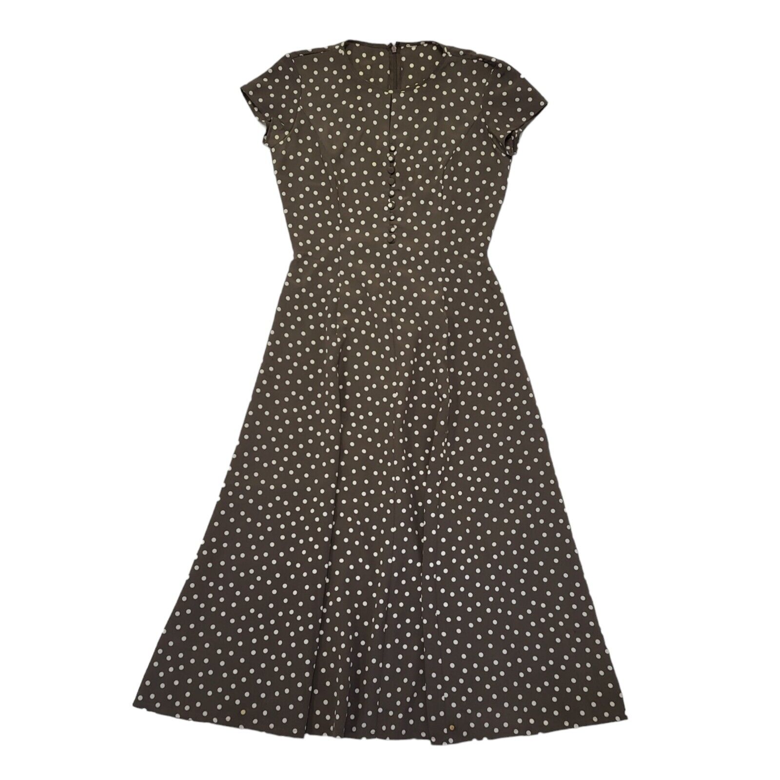 90s Vintage Brown & White Polka Dot Daywear Dress Women's Size 12.