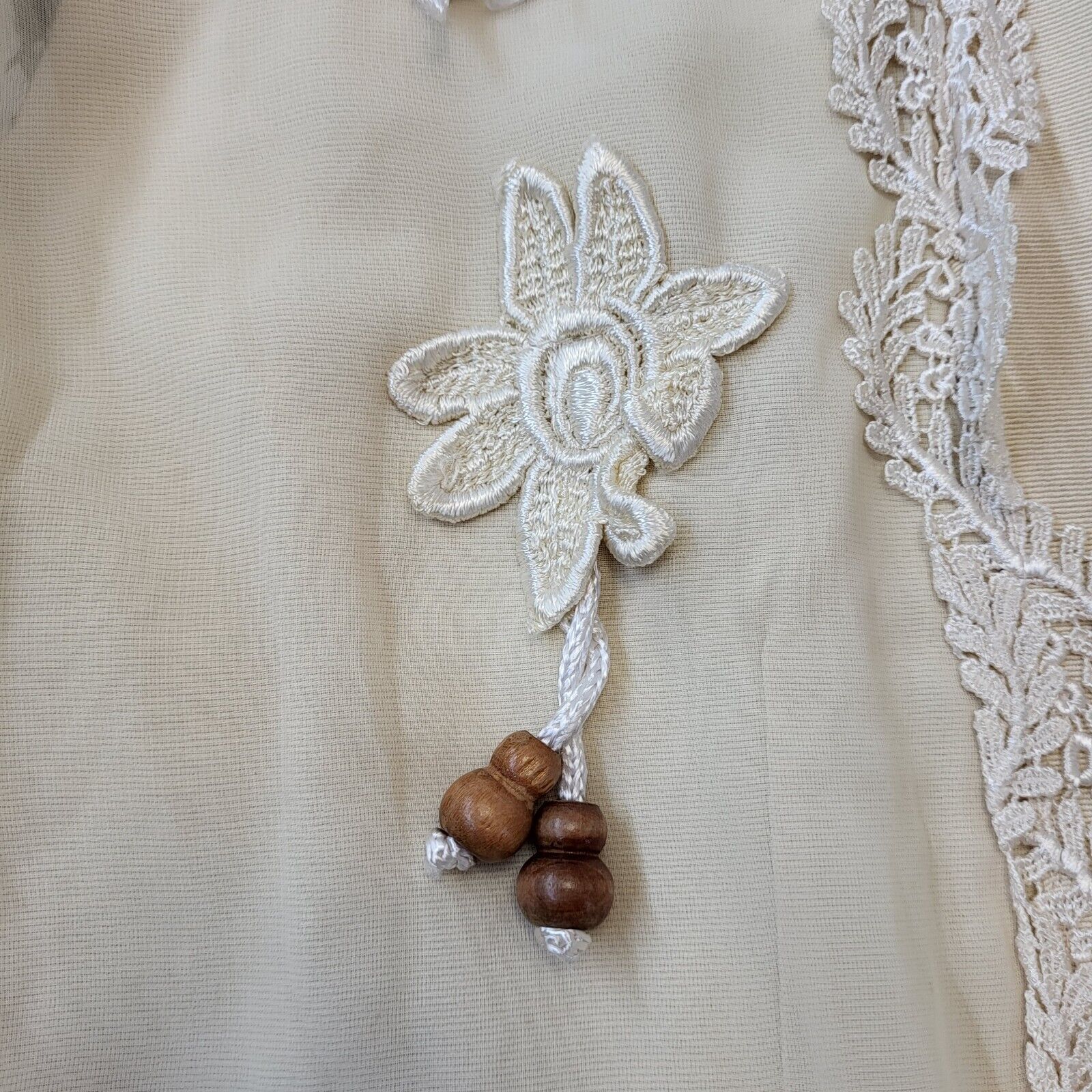 90s Vintage Cream & Brown Floral Open Front Retro Blouse Womens Size 16, Can Be Worn Oversized.