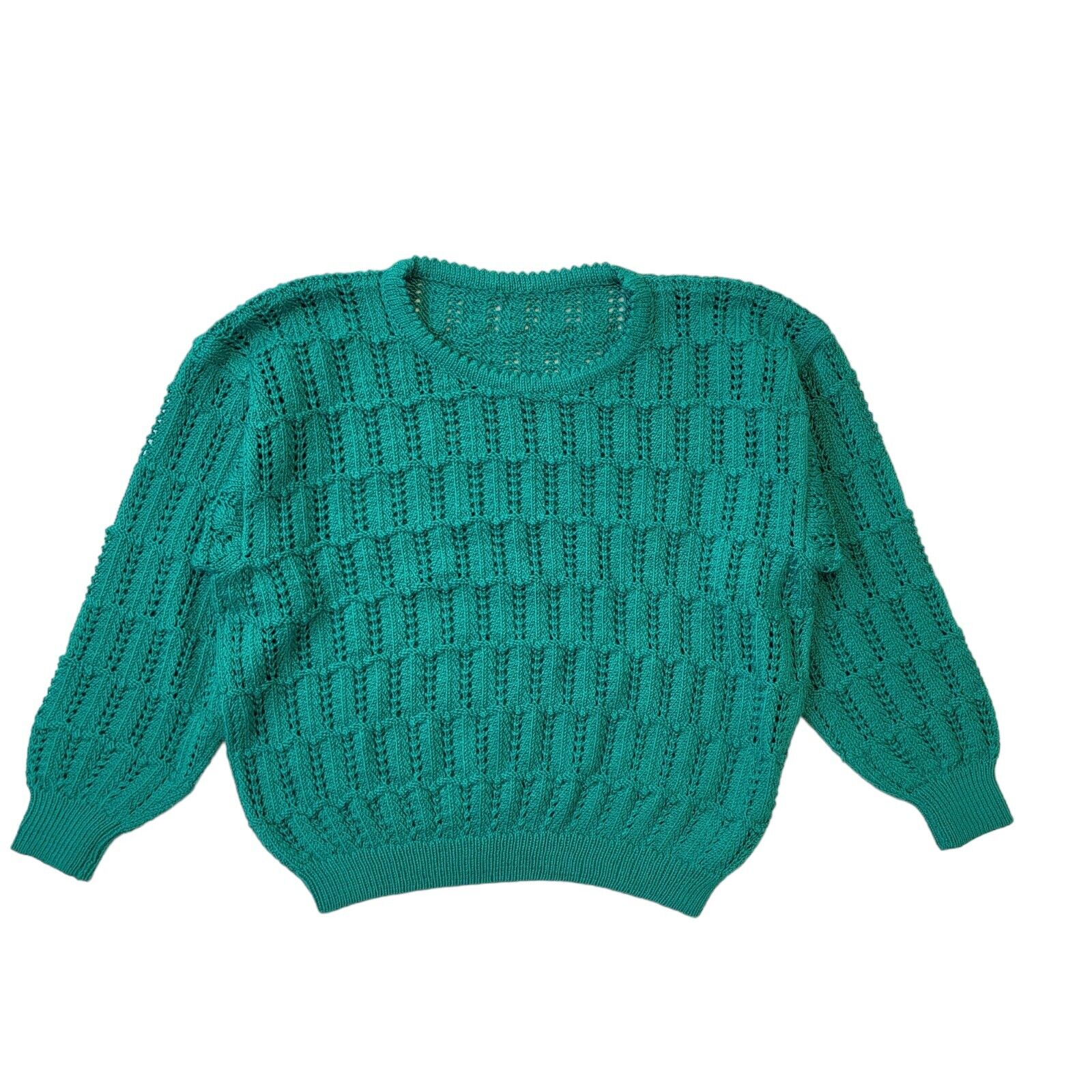 90s Vintage Green Crochet Round Neck Jumper Women's Size Small