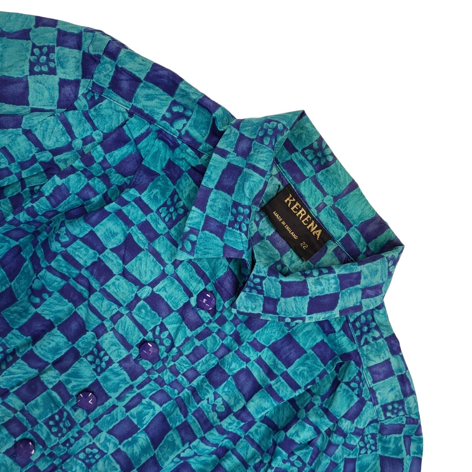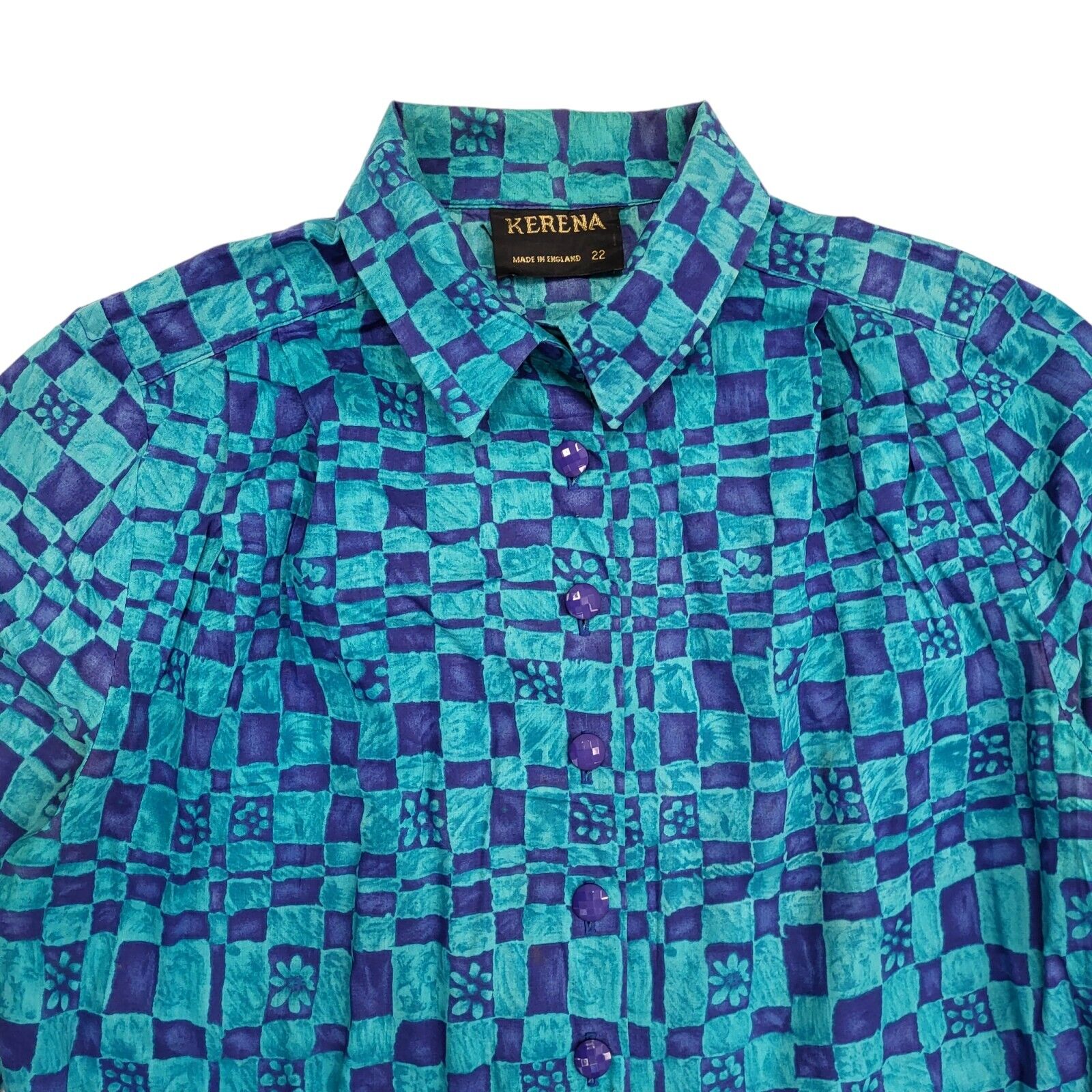 90s Vintage Kerena Blue Buttoned Daywear Dress Women's Size 18