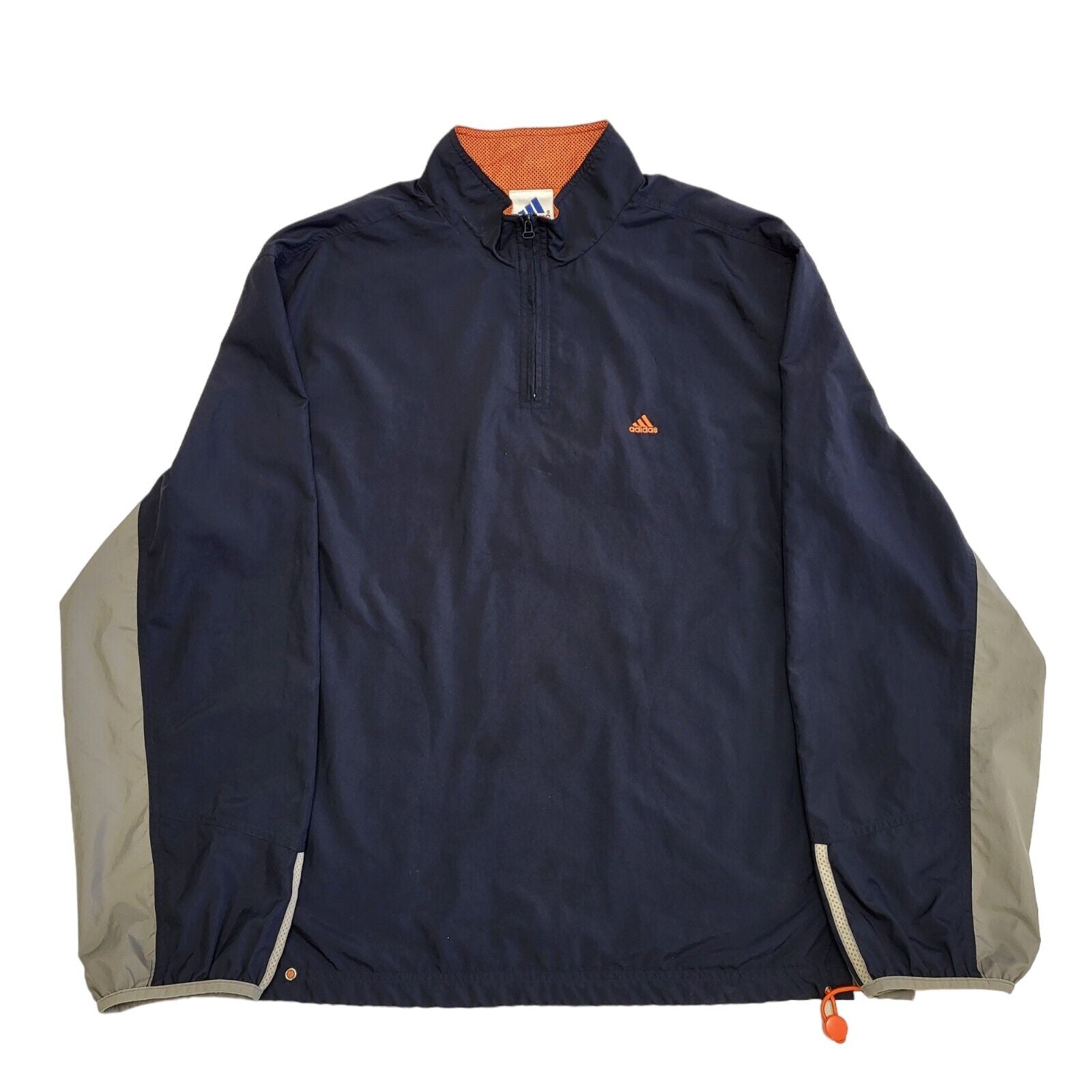 Adidas Blue & Grey 1/4 Zip Vintage 90s Windbreaker Jacket Men's Size L