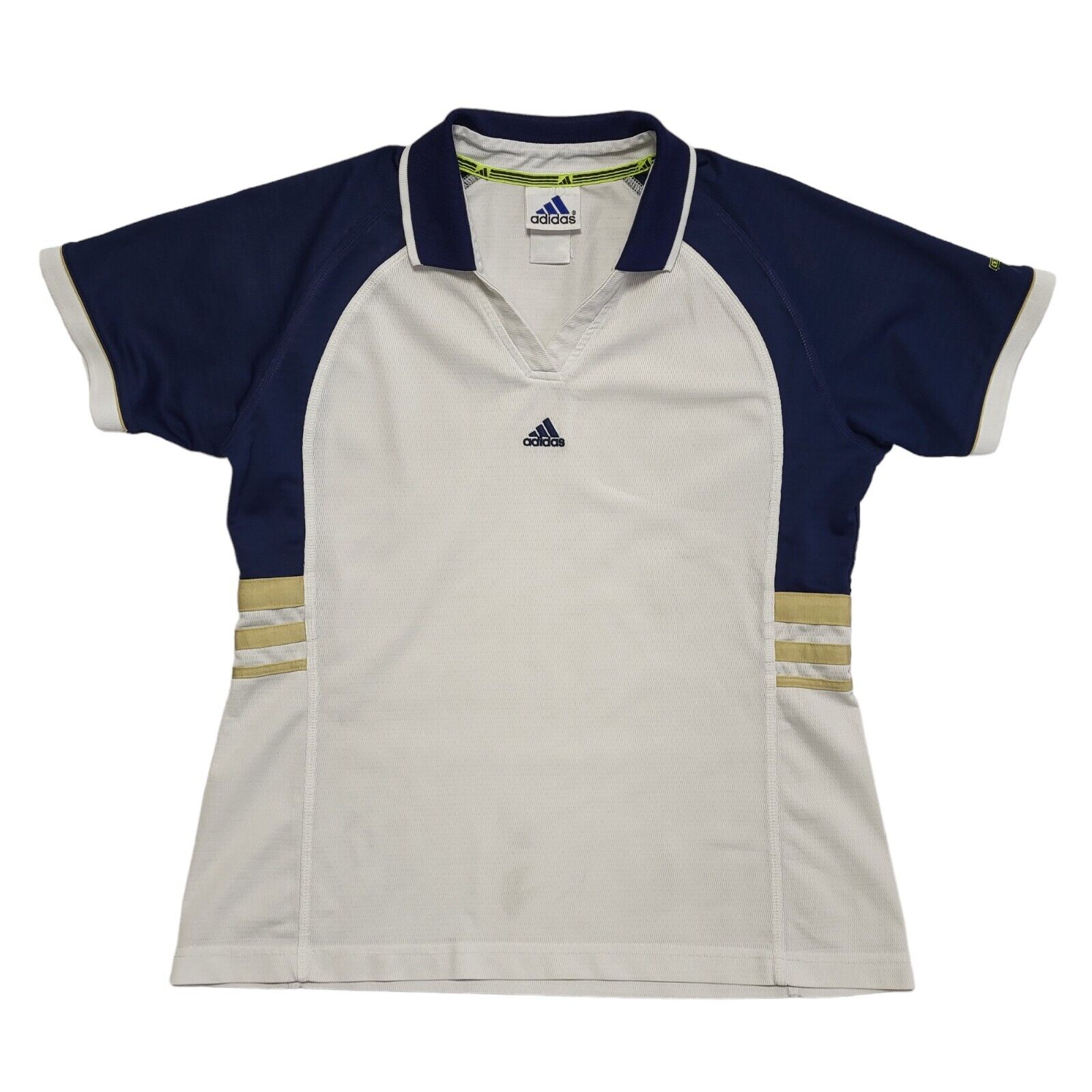 Adidas Vintage 90s White & Blue Collared Polo Shirt Uk Women's Size 14