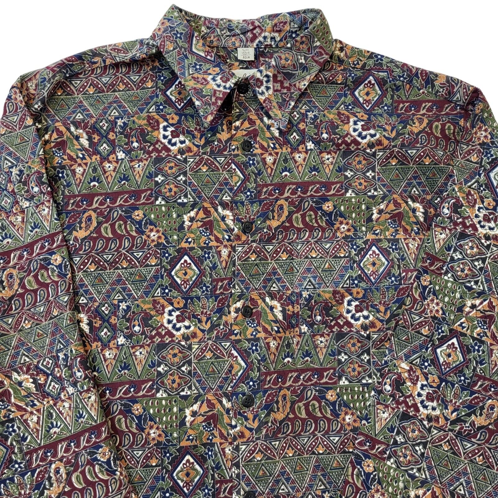 Angelo Litrico 90s Vintage Multicoloured Retro Abstract Long Sleeve Shirt Mens Size Medium.