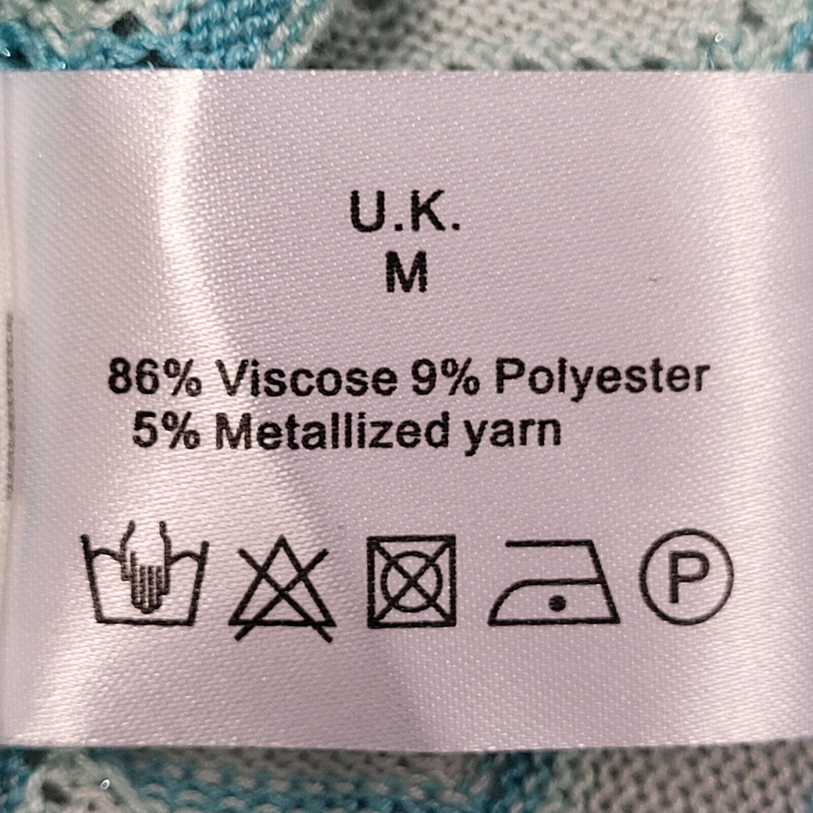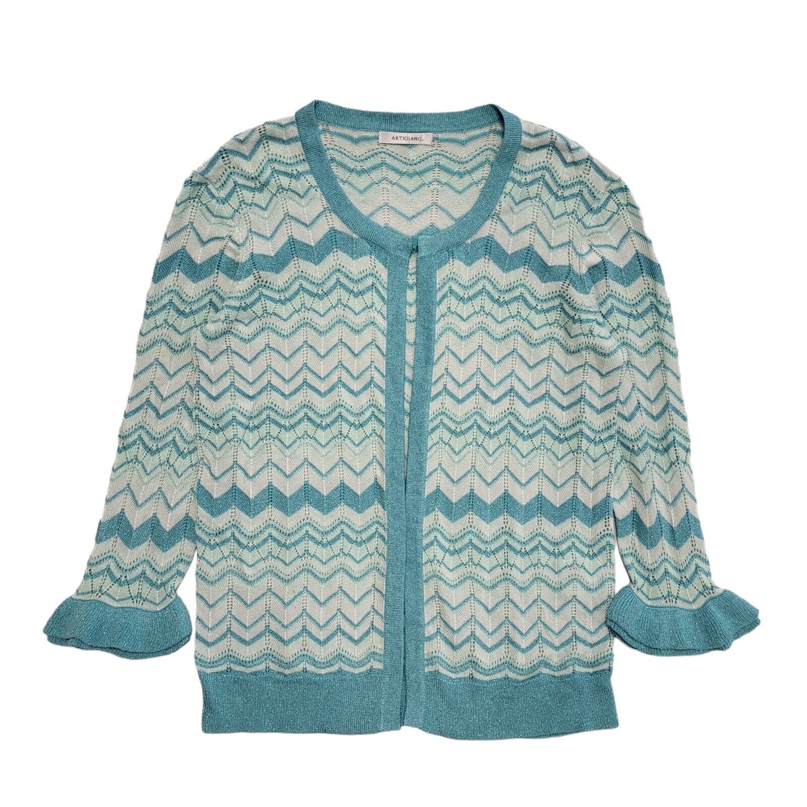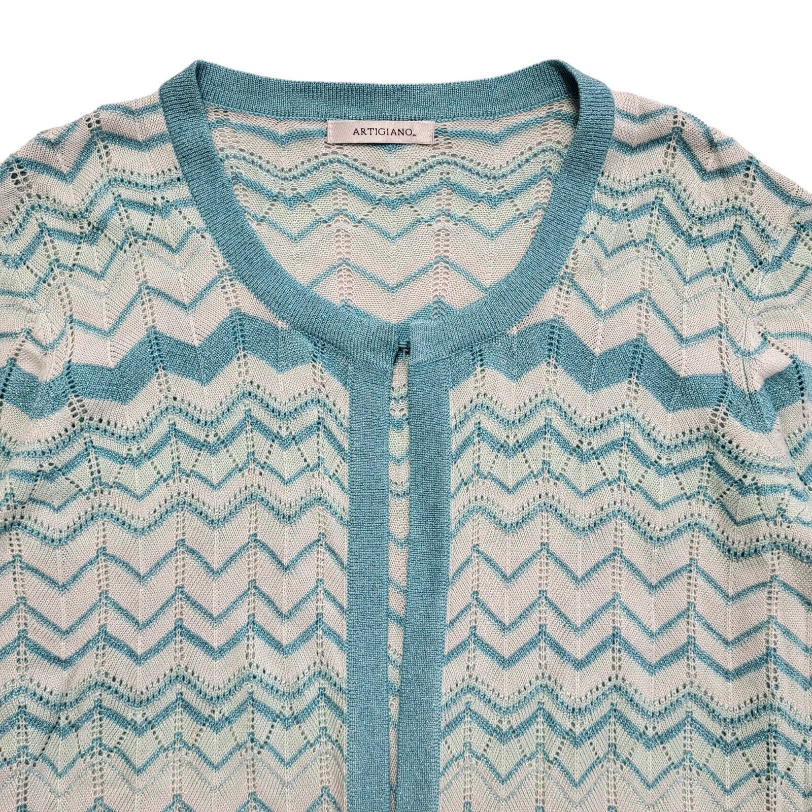 Artigiano Vintage 90's Blue Zig Zag 3/4 Sleeve Cardigan Womens UK M