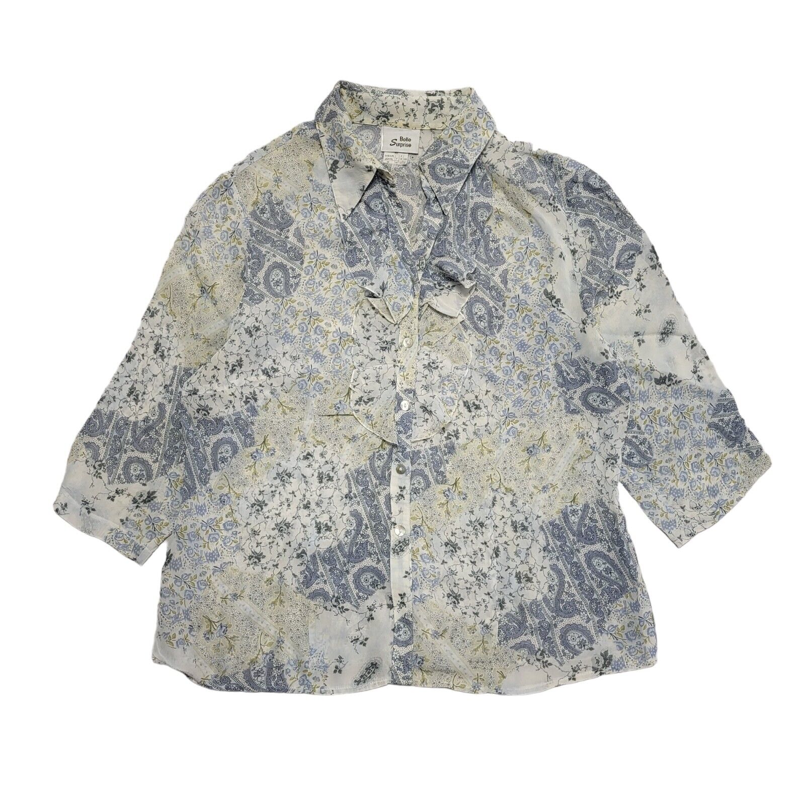 Belle Surprise Y2k Blue 3/4 Sleeve Floral Blouse Uk Women's size 18