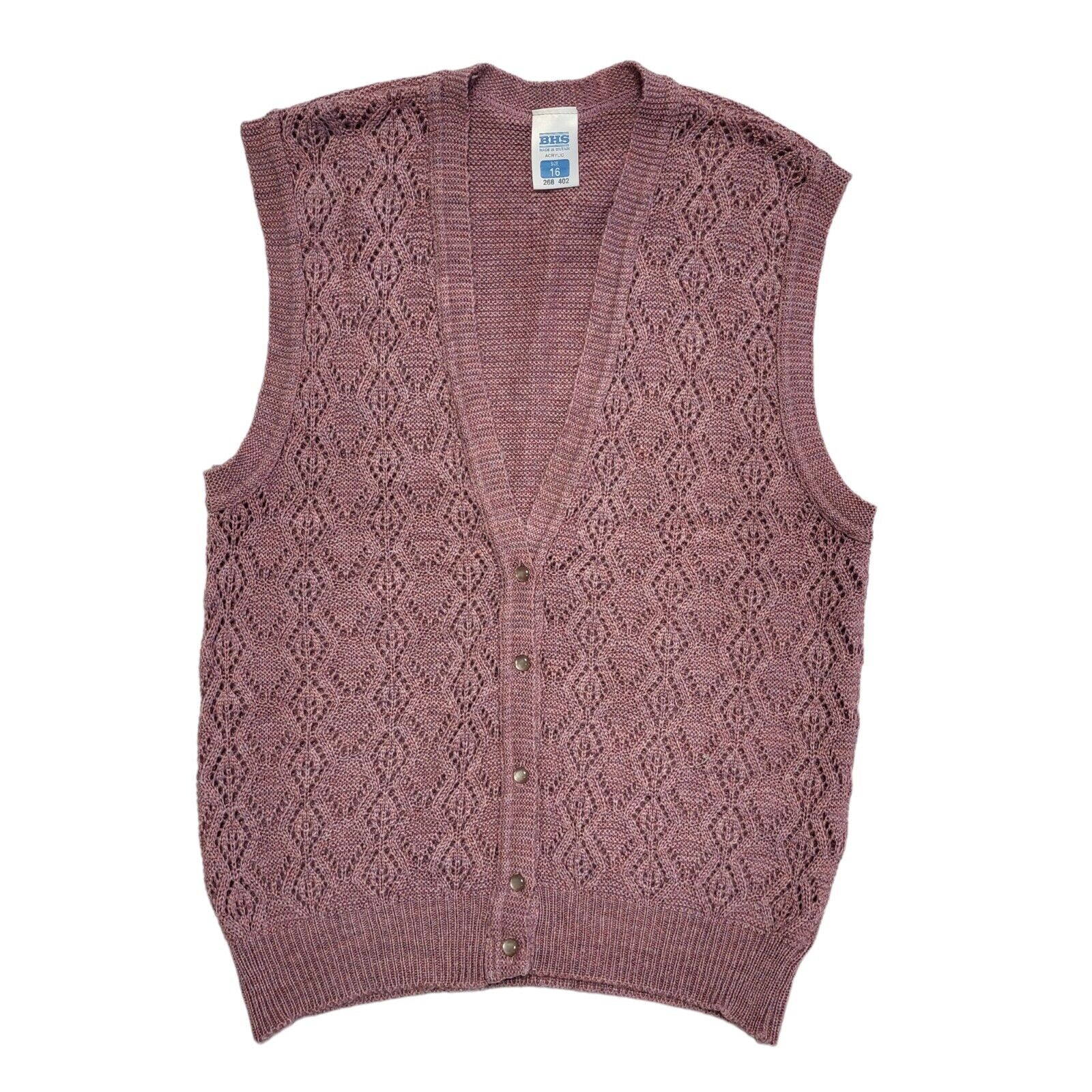 BHS Pink 80s Vintage Sleeveless Button Cardigan Uk Women's Size 16