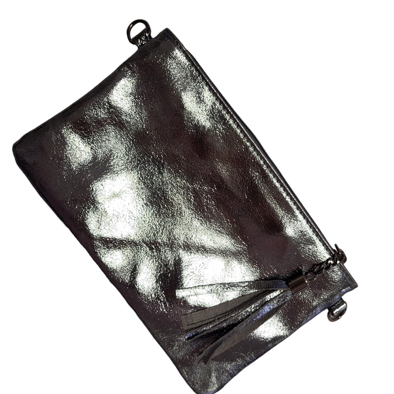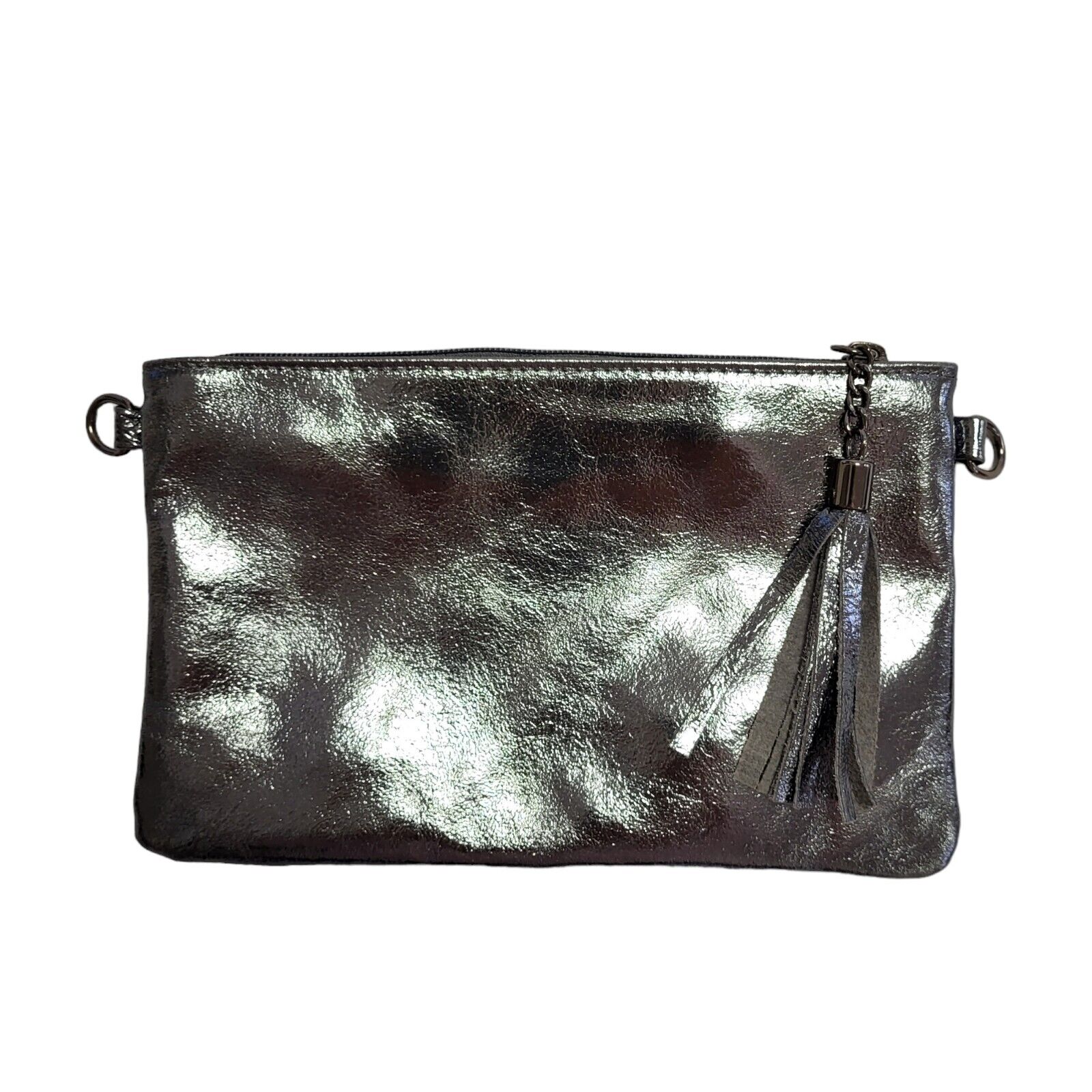 Borse In Pelle Leather Silver Leather Shoulder Hand Bag Uk Women's Size 6" x 9"