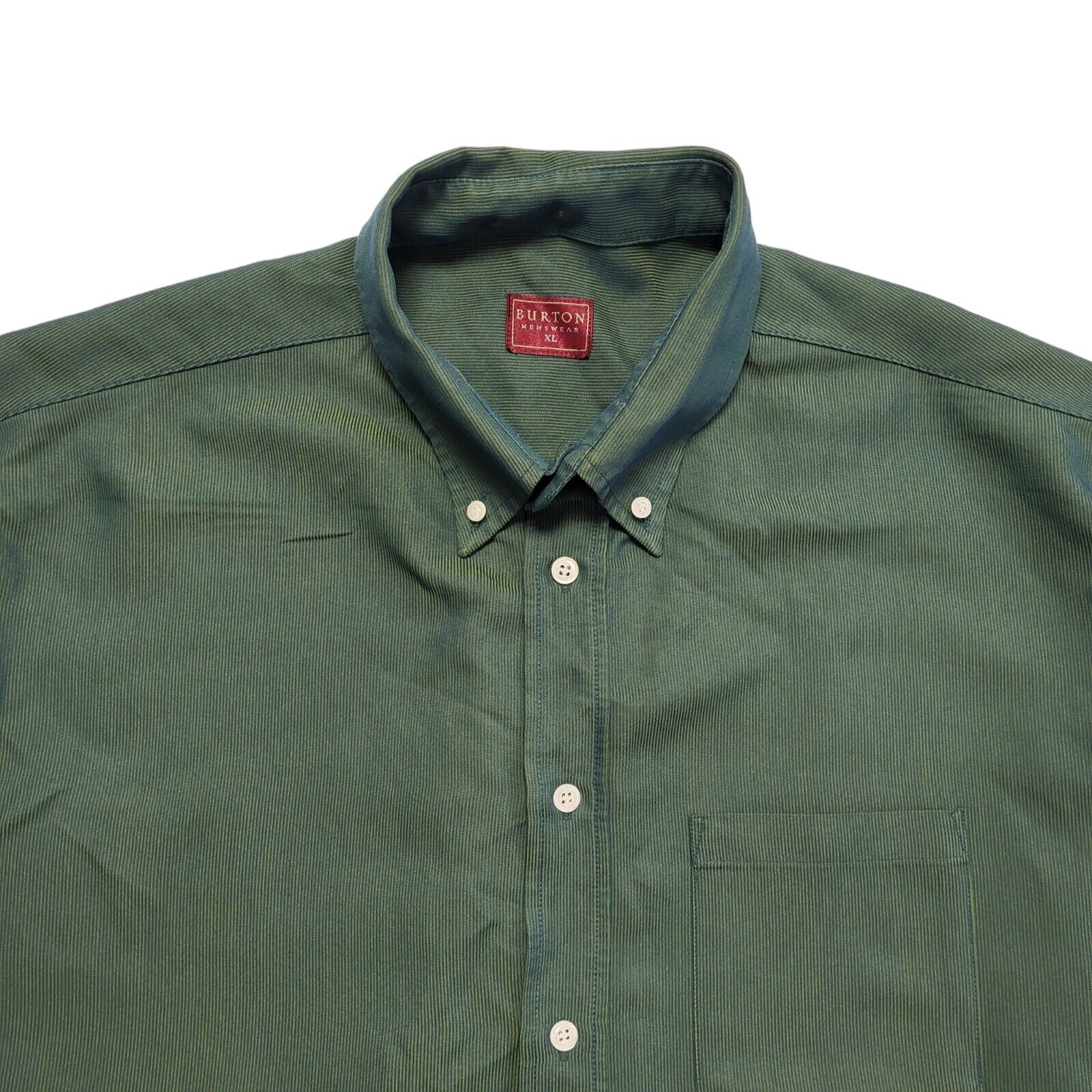 Burton Vintage 90's Green Striped Relaxed Fit Long Sleeve Shirt Men's UK Size XL