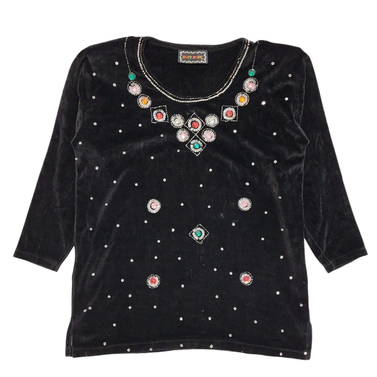 Buzy Body Vintage 90's Black Sequin Velour Sweatshirt Womens UK Free Size XL