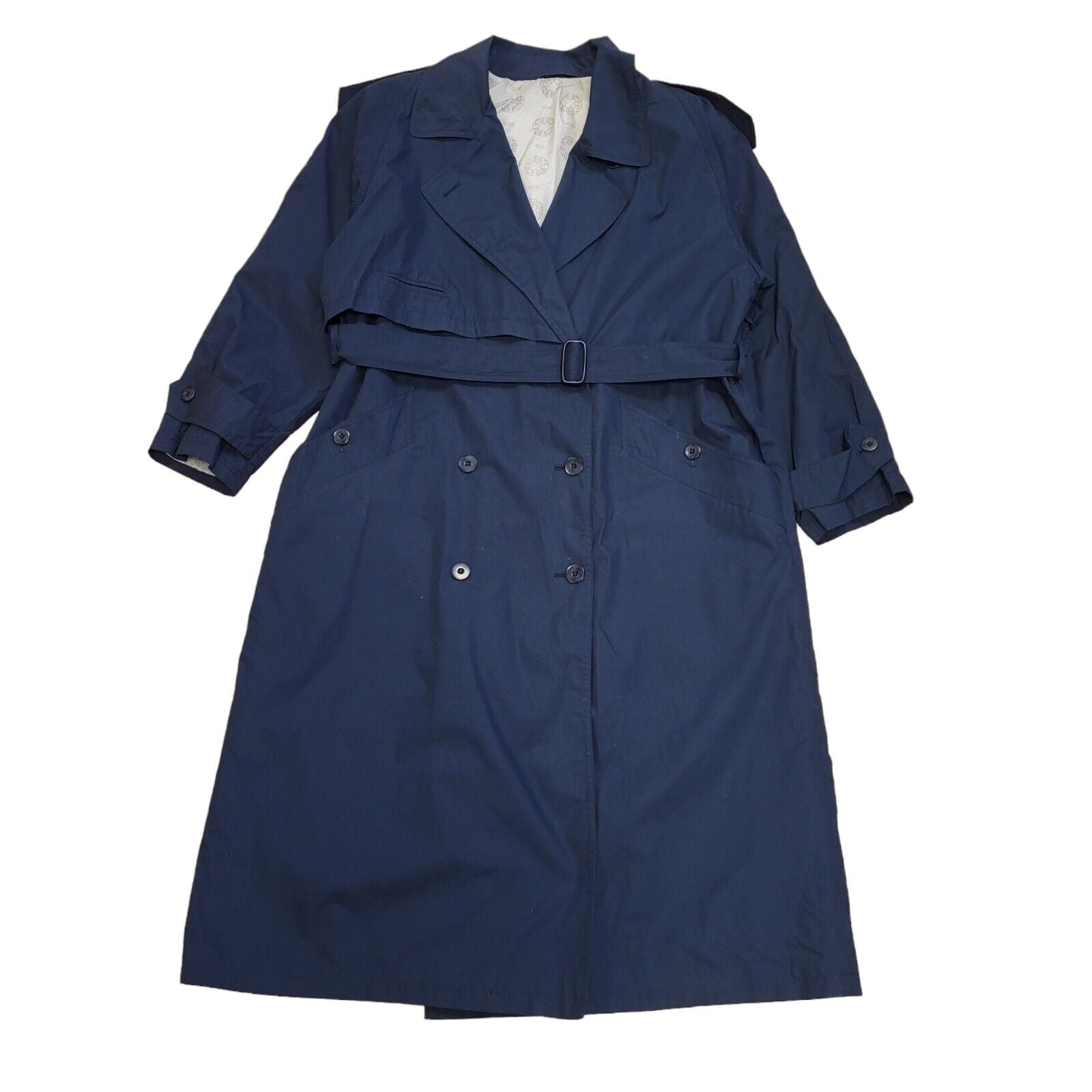 C&A Navy Blue Vintage 80s Button Belted Coat Women's Size 14