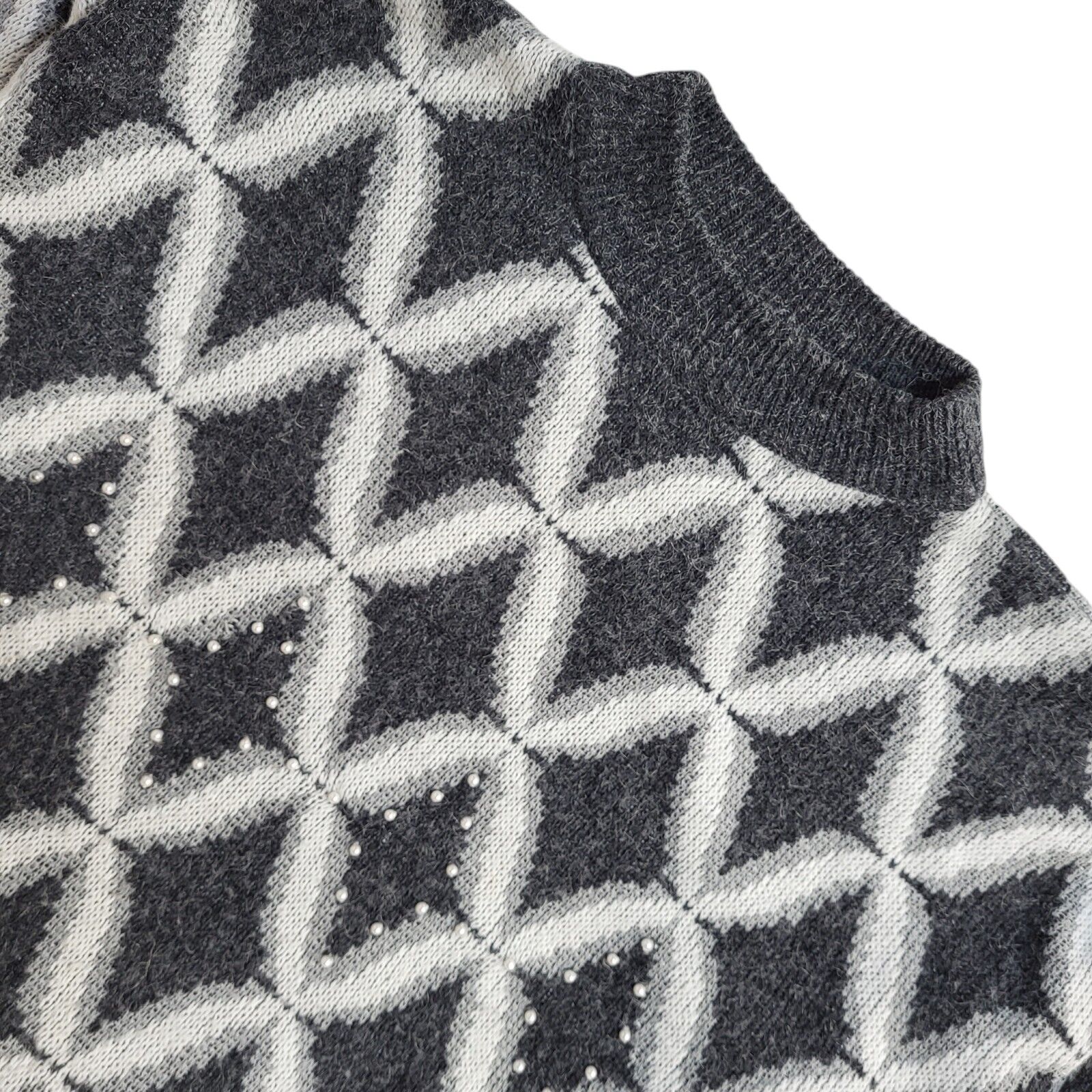 C&A Vintage 90's Grey & White Round Neck Jumper UK Women's Size XL