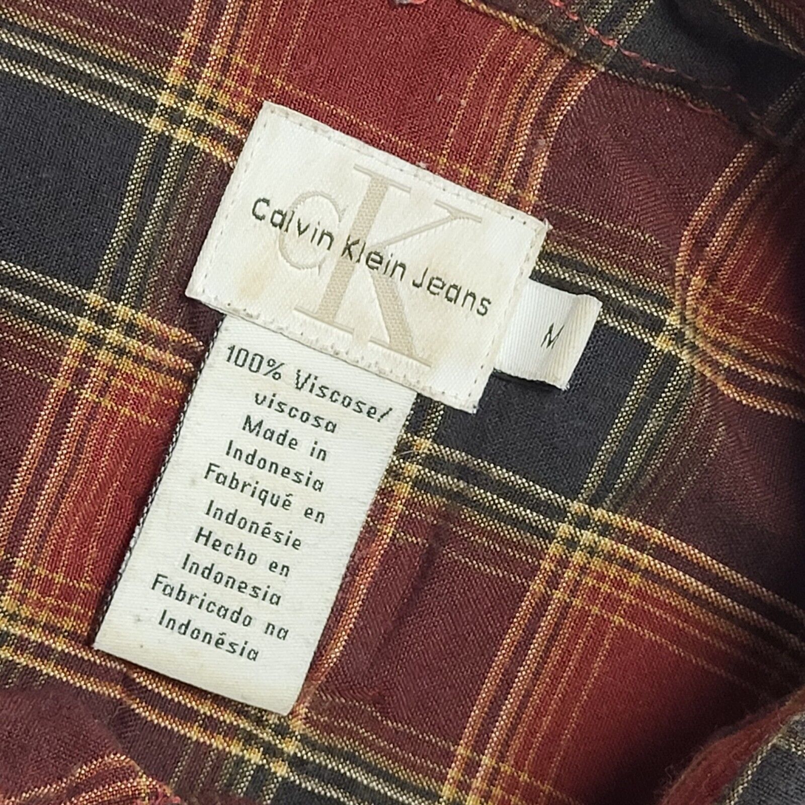 Calvin Klein 90's Red & Black Checked Long Sleeve Shirt Mens UK Medium.