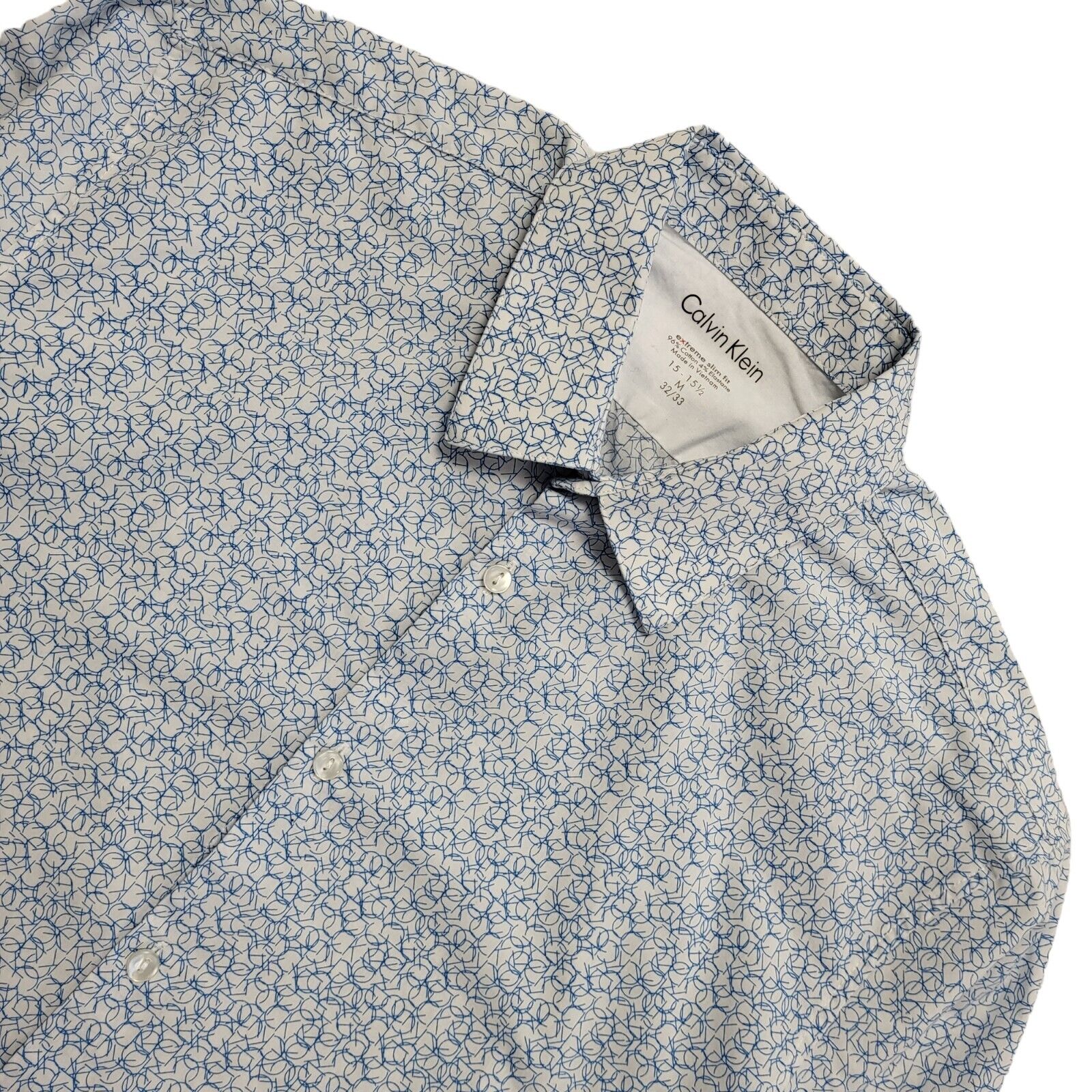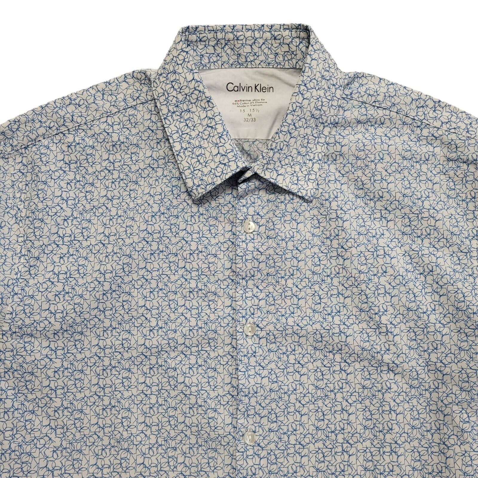 Calvin Klein 90's Vintage White & Blue Long Sleeve Shirt Mens UK Size M