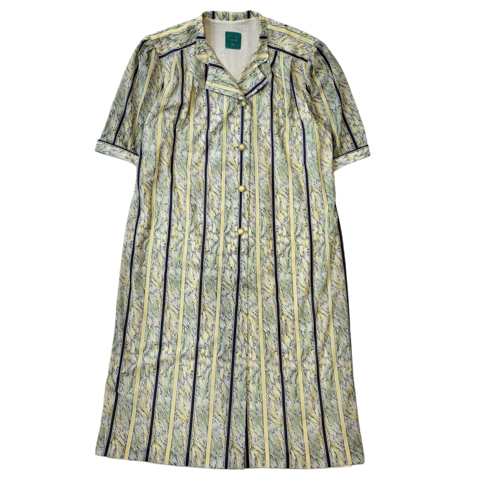 Canda C&A 70s Vintage Collared Green, Yellow & Navy Daywear Dress Women's Size 12 Eu 40.