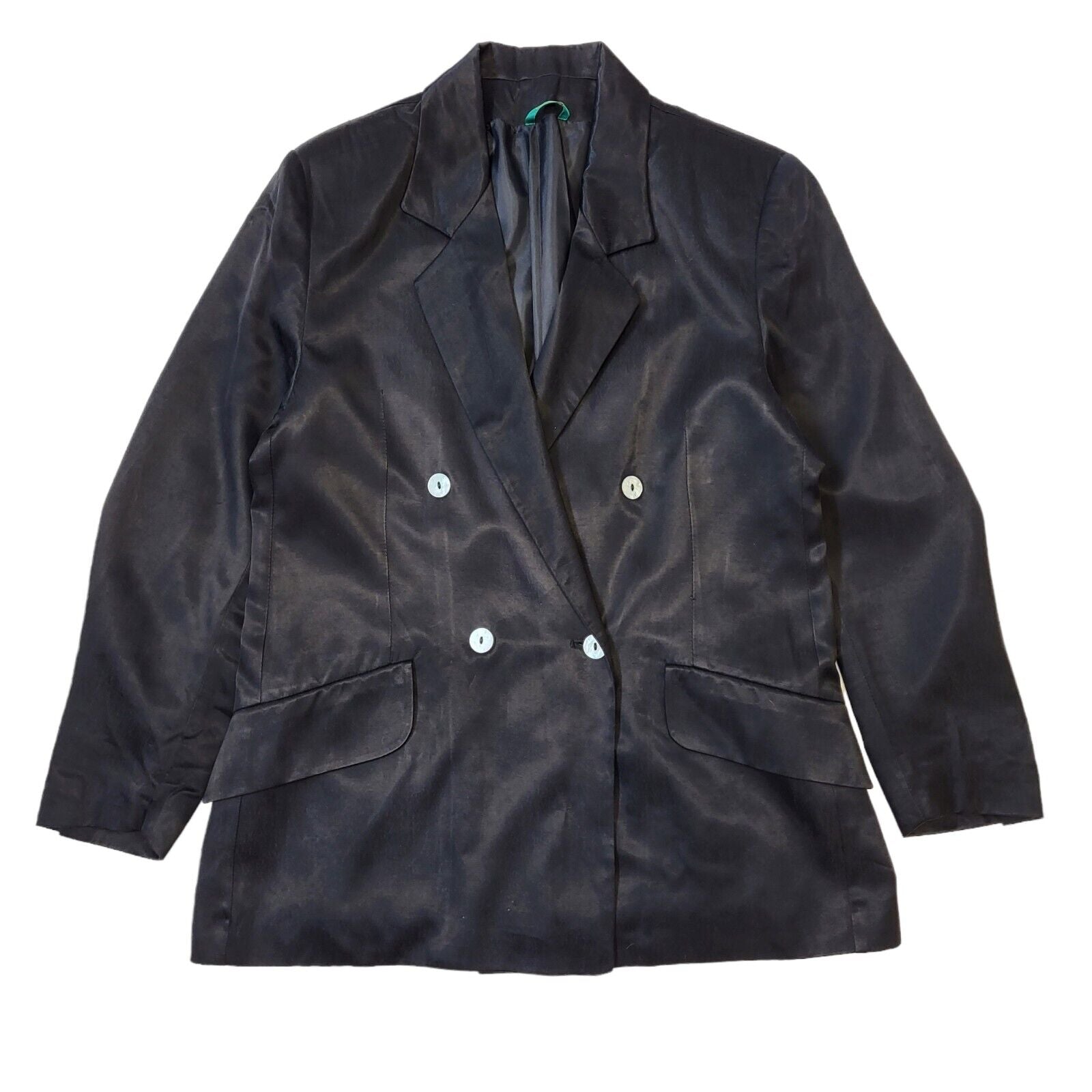 Canda C&A 80s Vintage Black Viscose Double Breasted Blazer Jacket Women's Size 16.