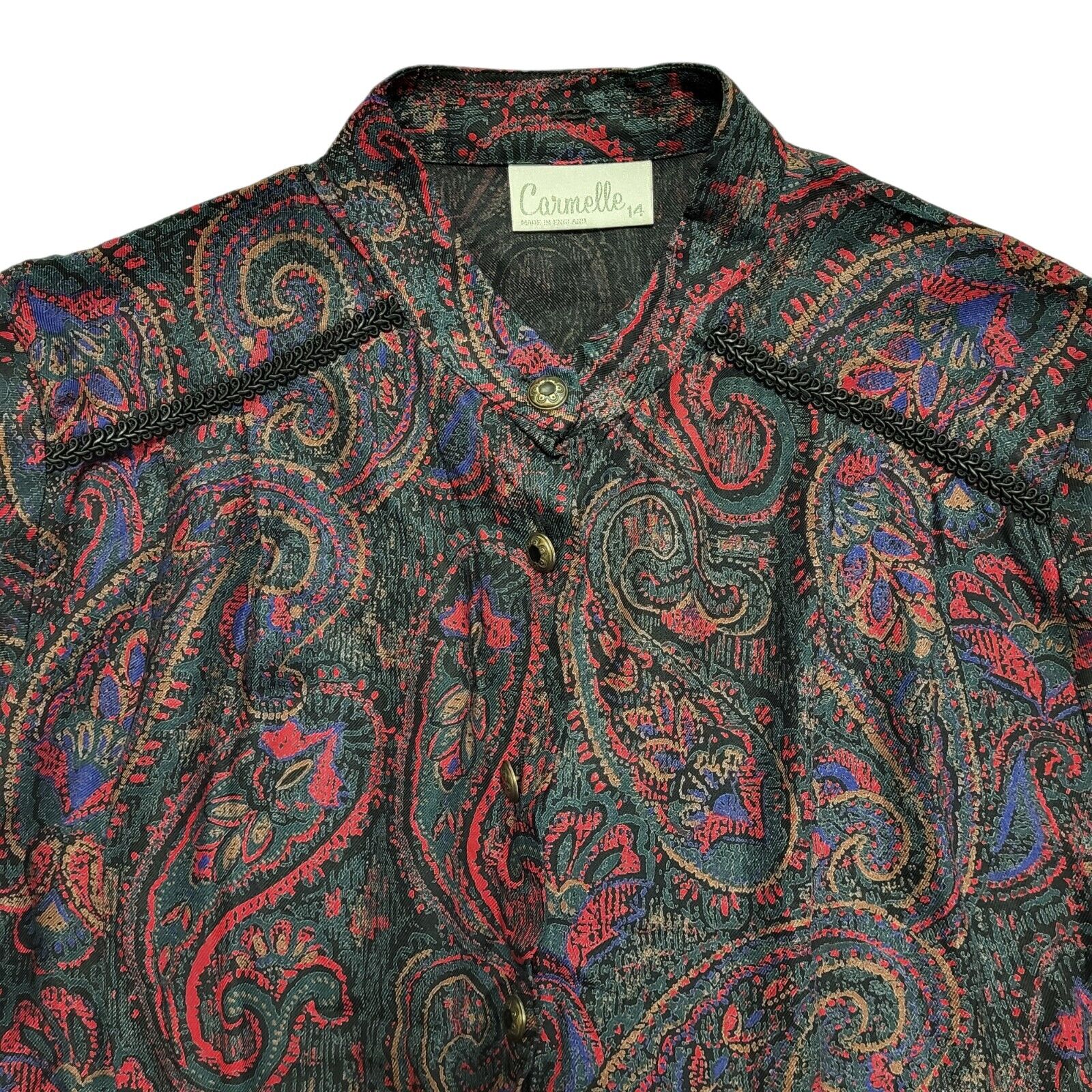 Carmelle Vintage 80s Red Blue Abstract Long Sleeve Dress Uk Women's Size 14 W32