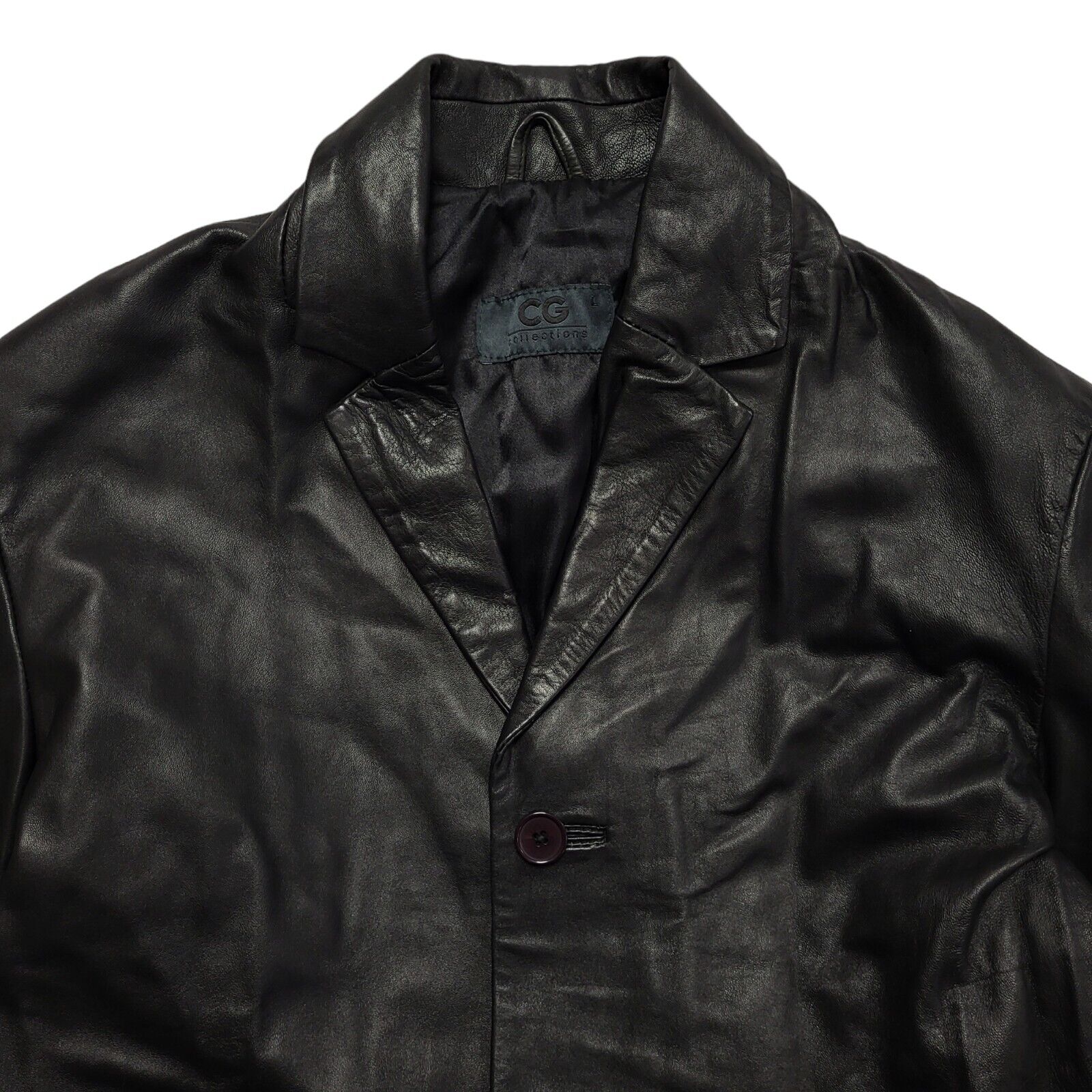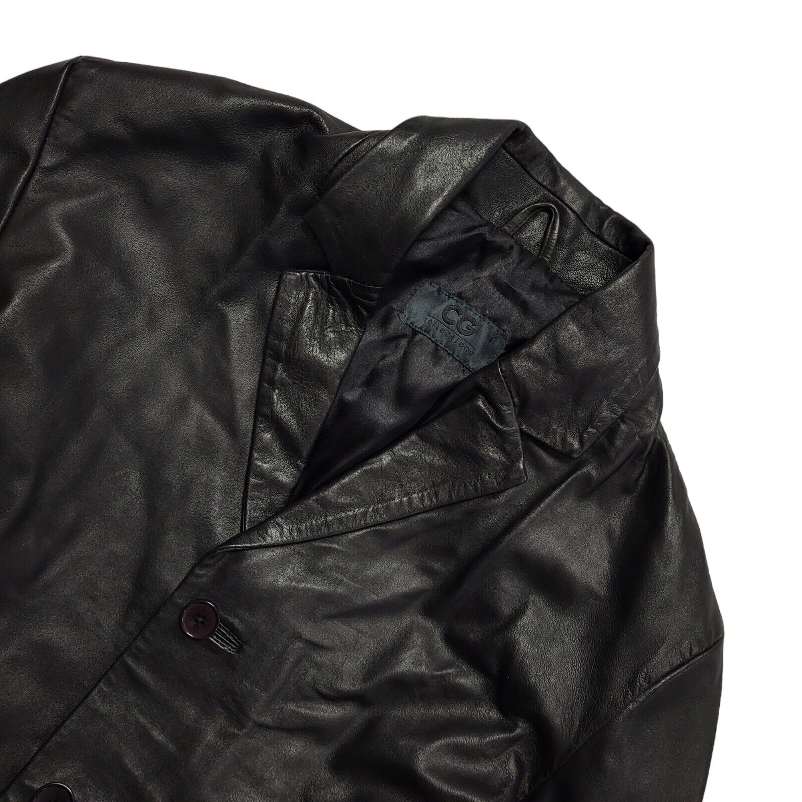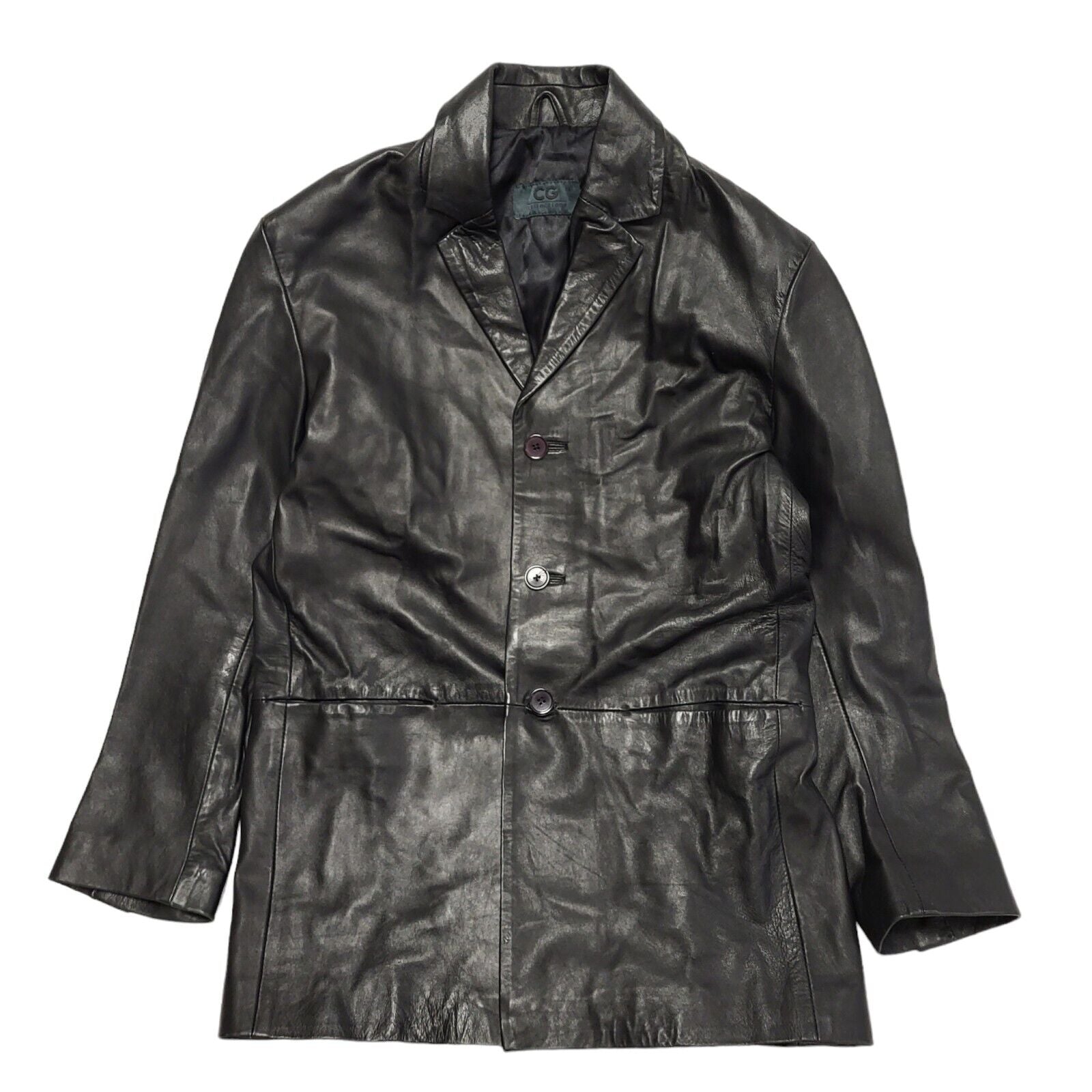 CG 80s Vintage Black Button Leather Jacket Uk Men's Size Large