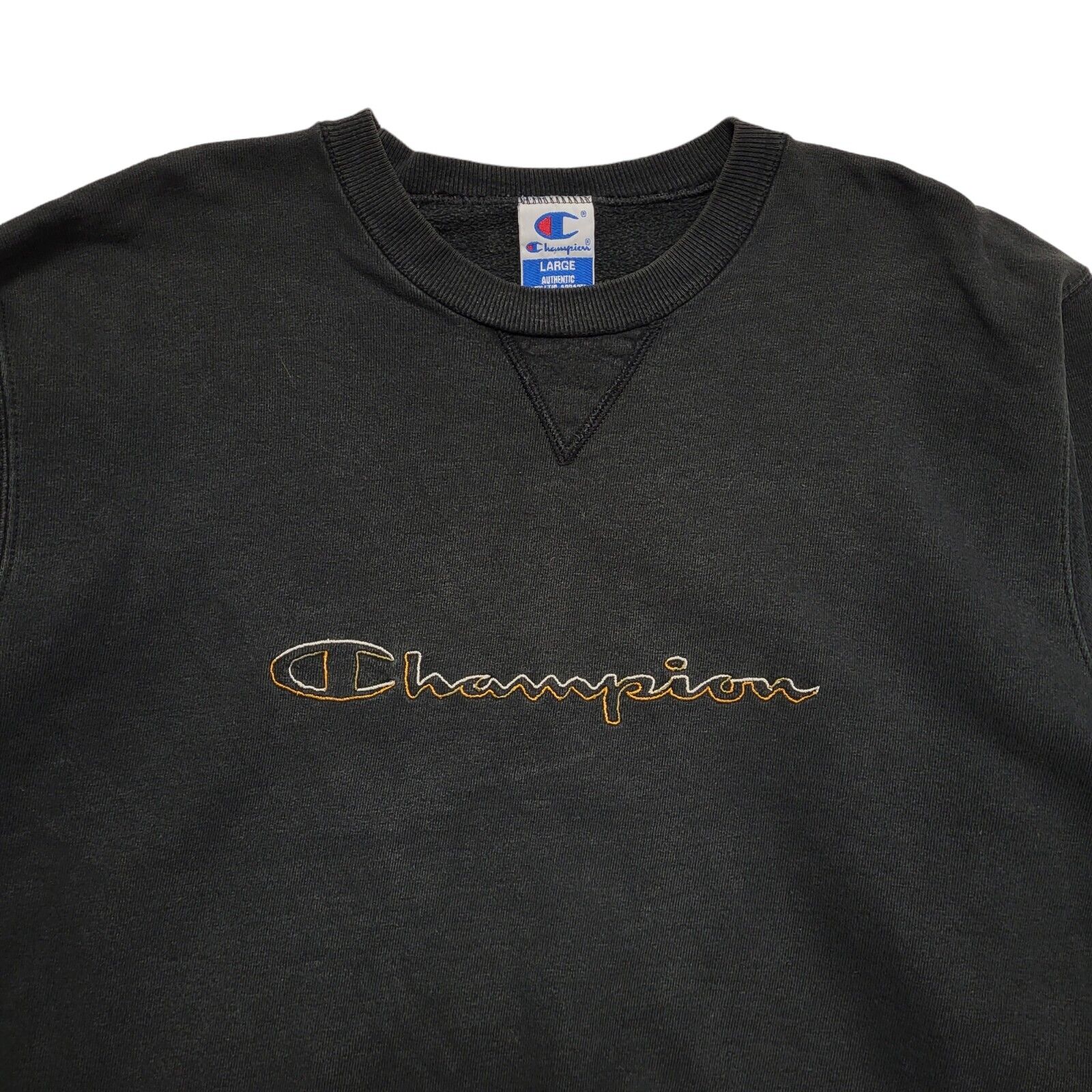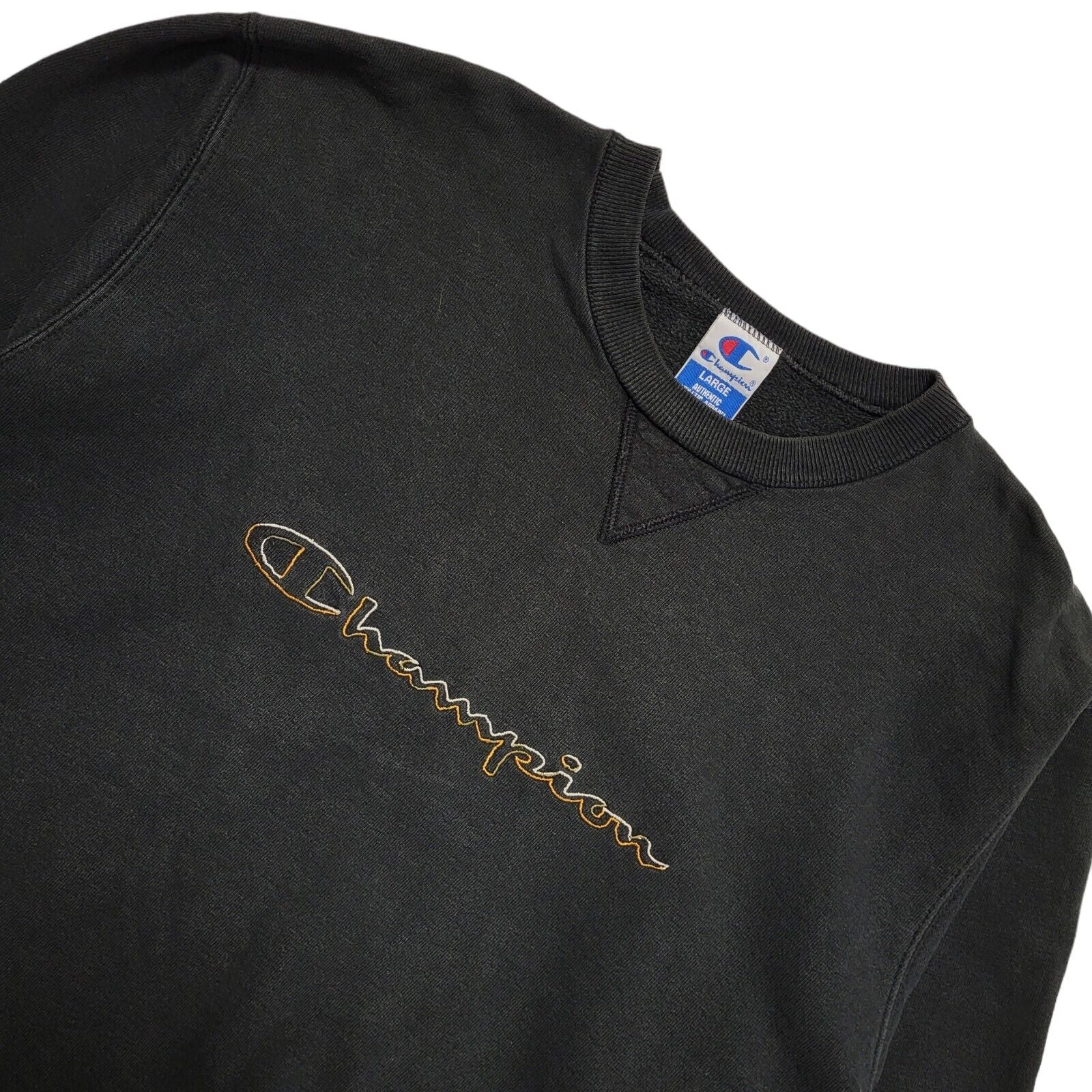 Champion Black Crew Neck Y2k Sweatshirt Uk Men's Size Large