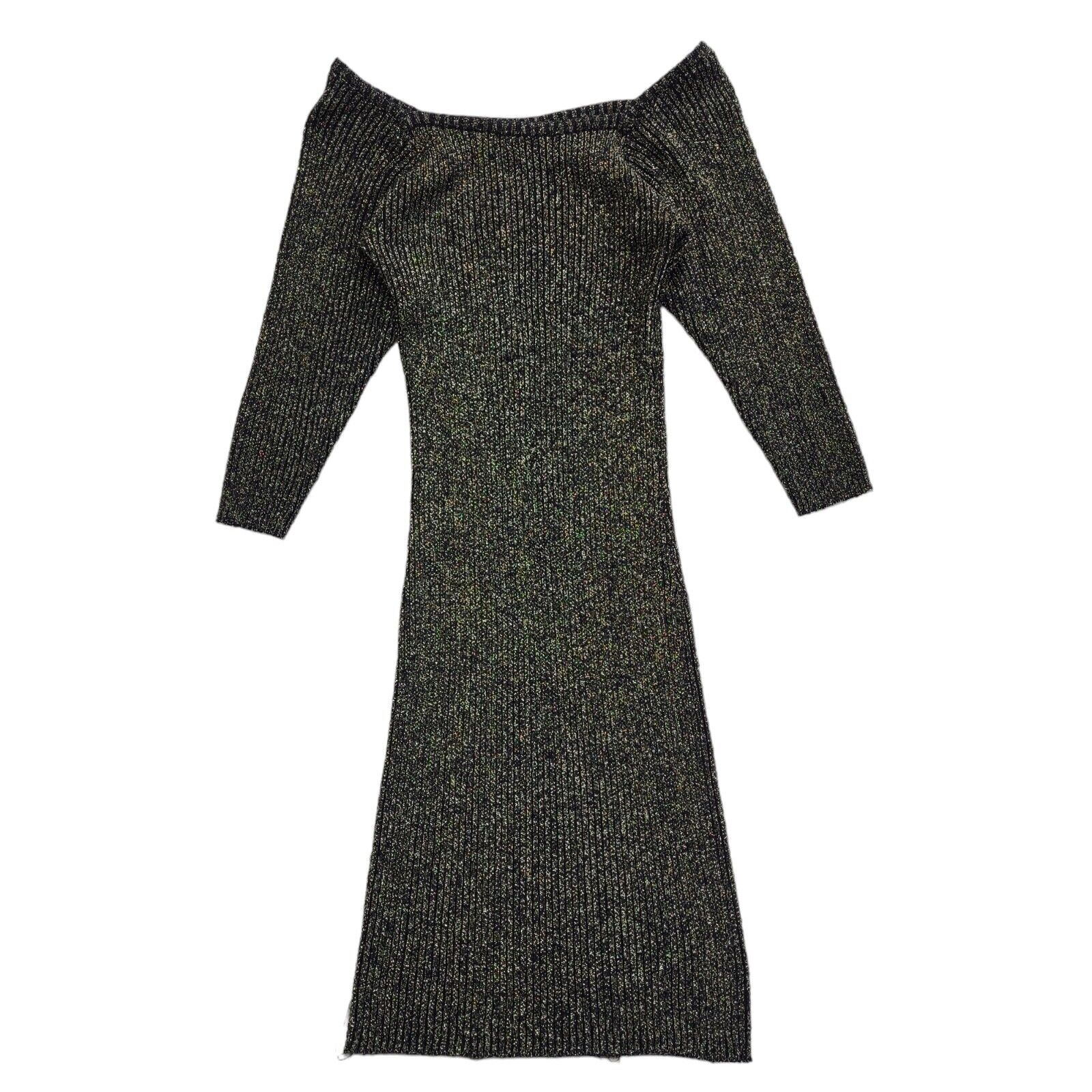 City Swingers Vintage 70's Black & Gold Off Shouler Dress Uk Women's Size 14