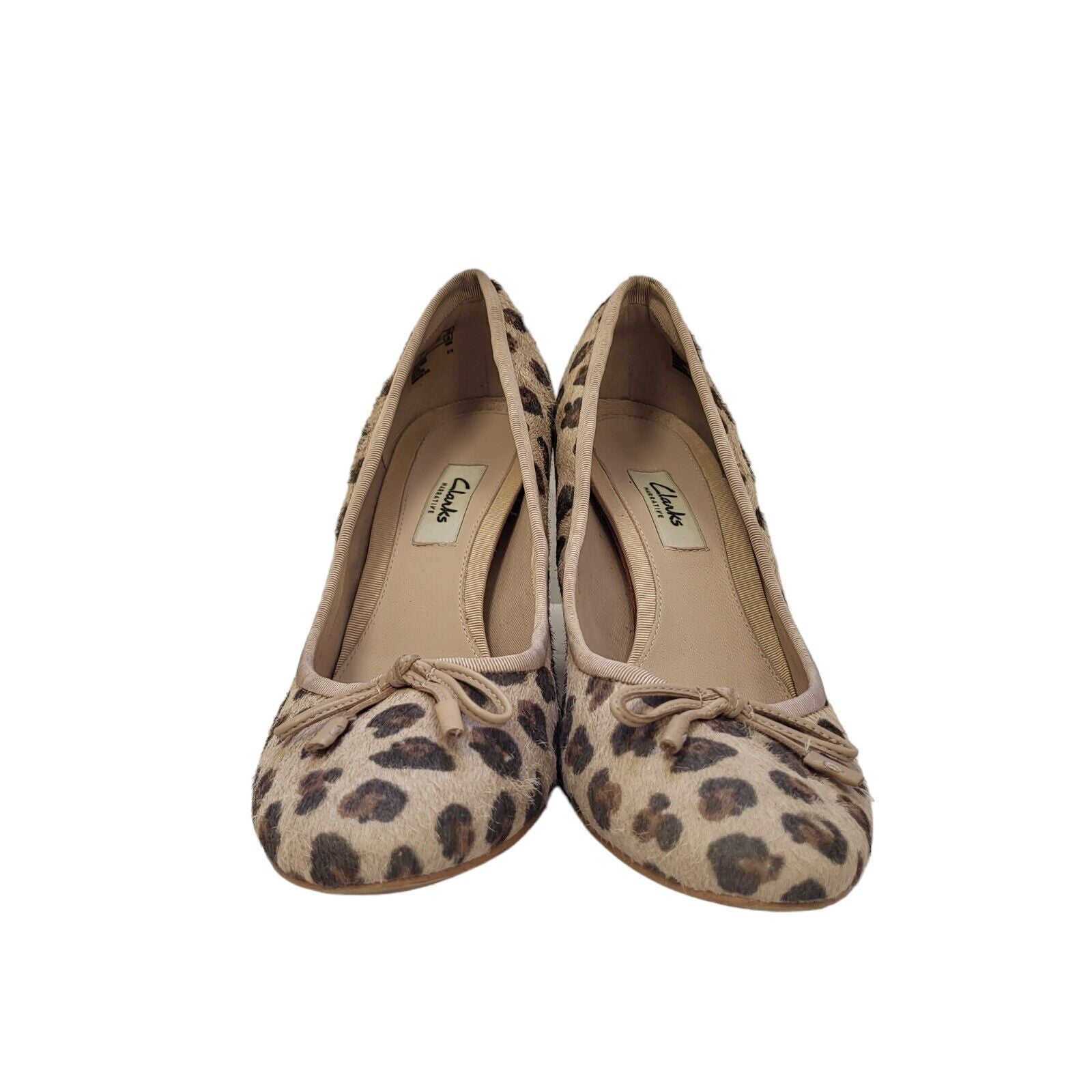 Clarks Beige Animal Print Vintage Slip-on Heels Shoes Uk Women's Size 6