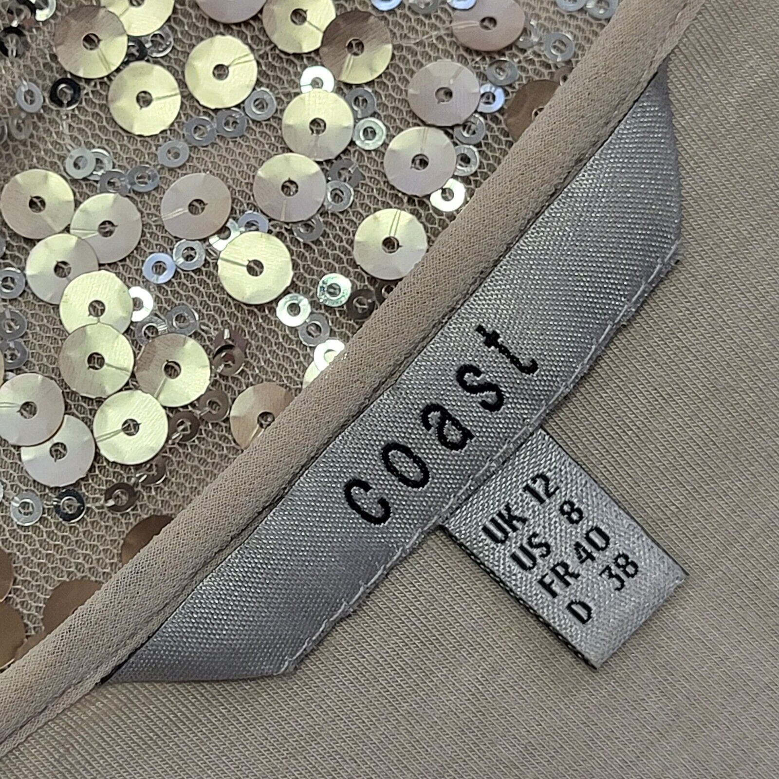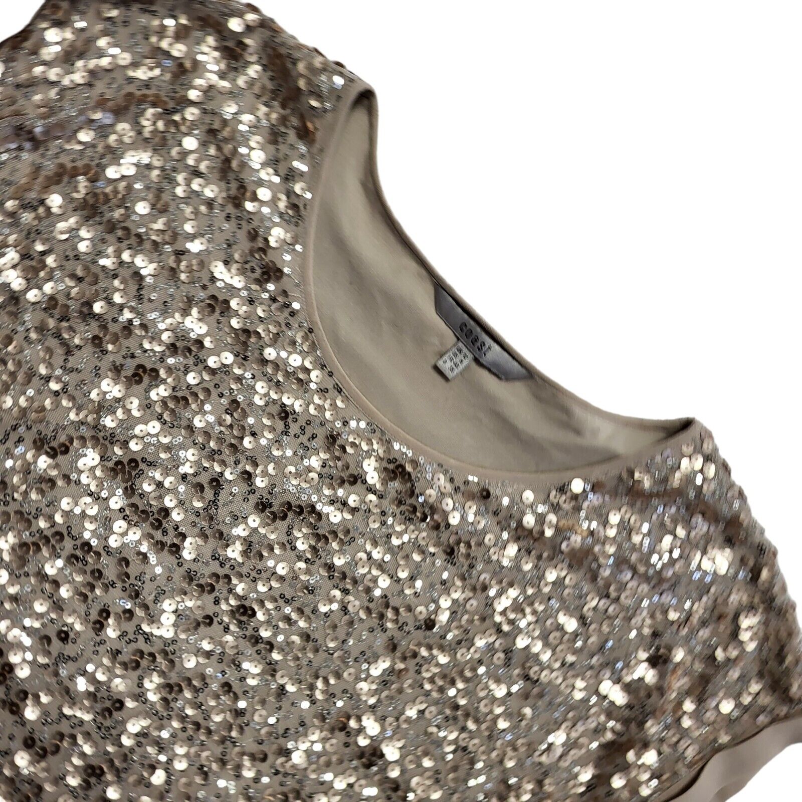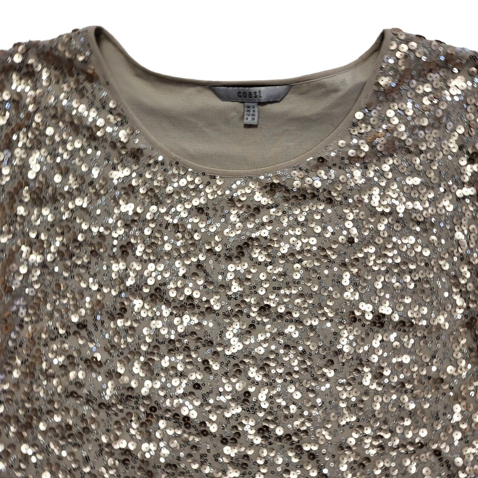 Coast Vintage Y2K Gold Sequins Short Sleeve Round Neck T-Shirt Uk Women's 12