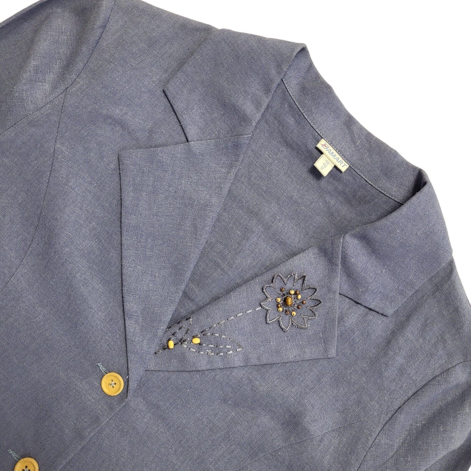 Damart Vintage 80's Blue Button Front Linen Dress Jacket Uk Women's Size 12