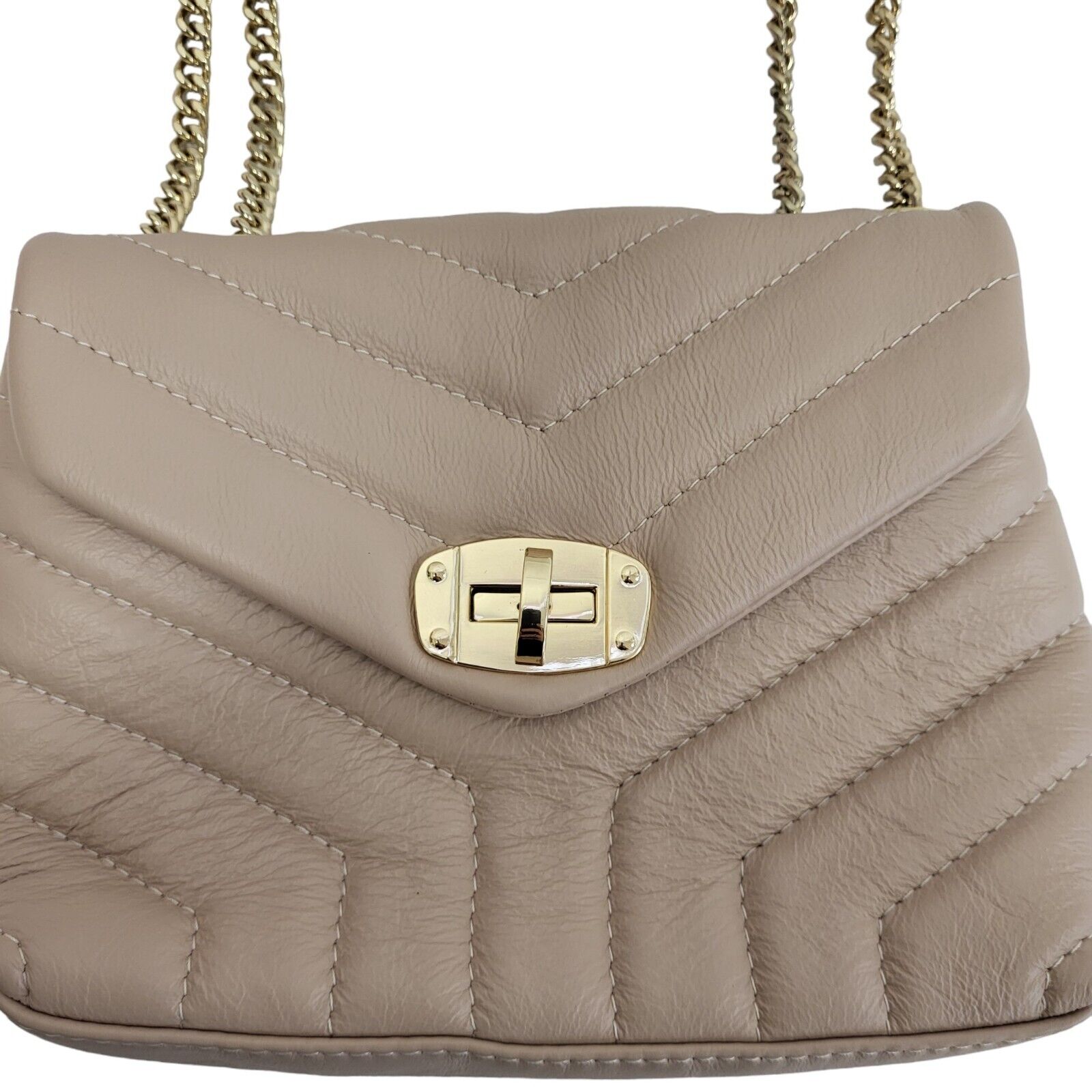 Davina Firenze Beige Clasp Leather Small Shoulder Bag Uk Women's Size 6.5" x 9"
