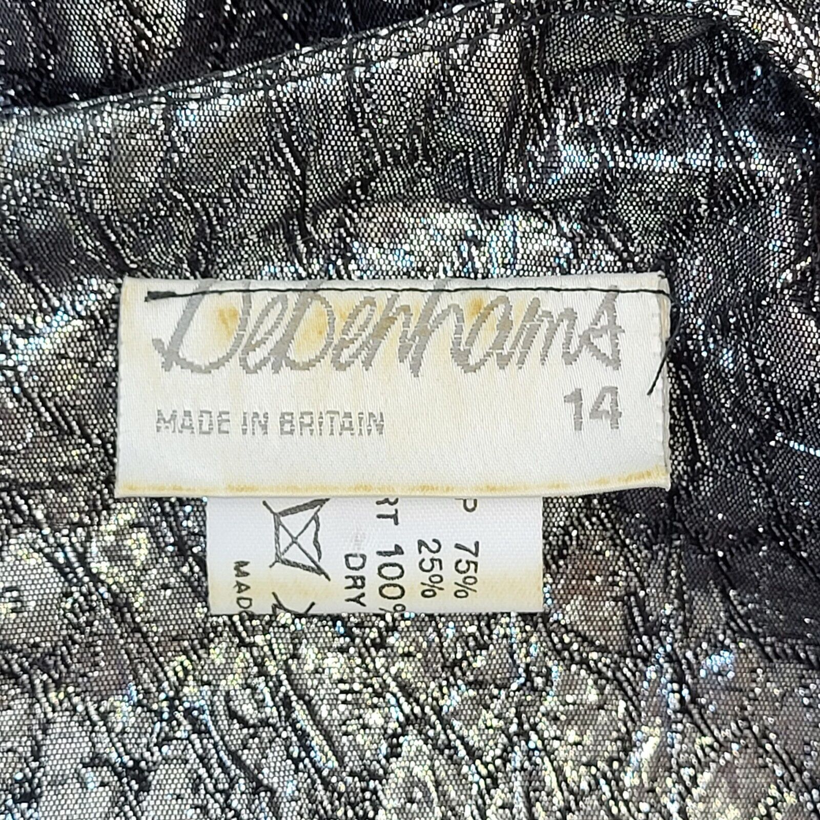 Debenhams 80s Vintage Silver Metallic & Velvet Evening Dress Women's Size 14