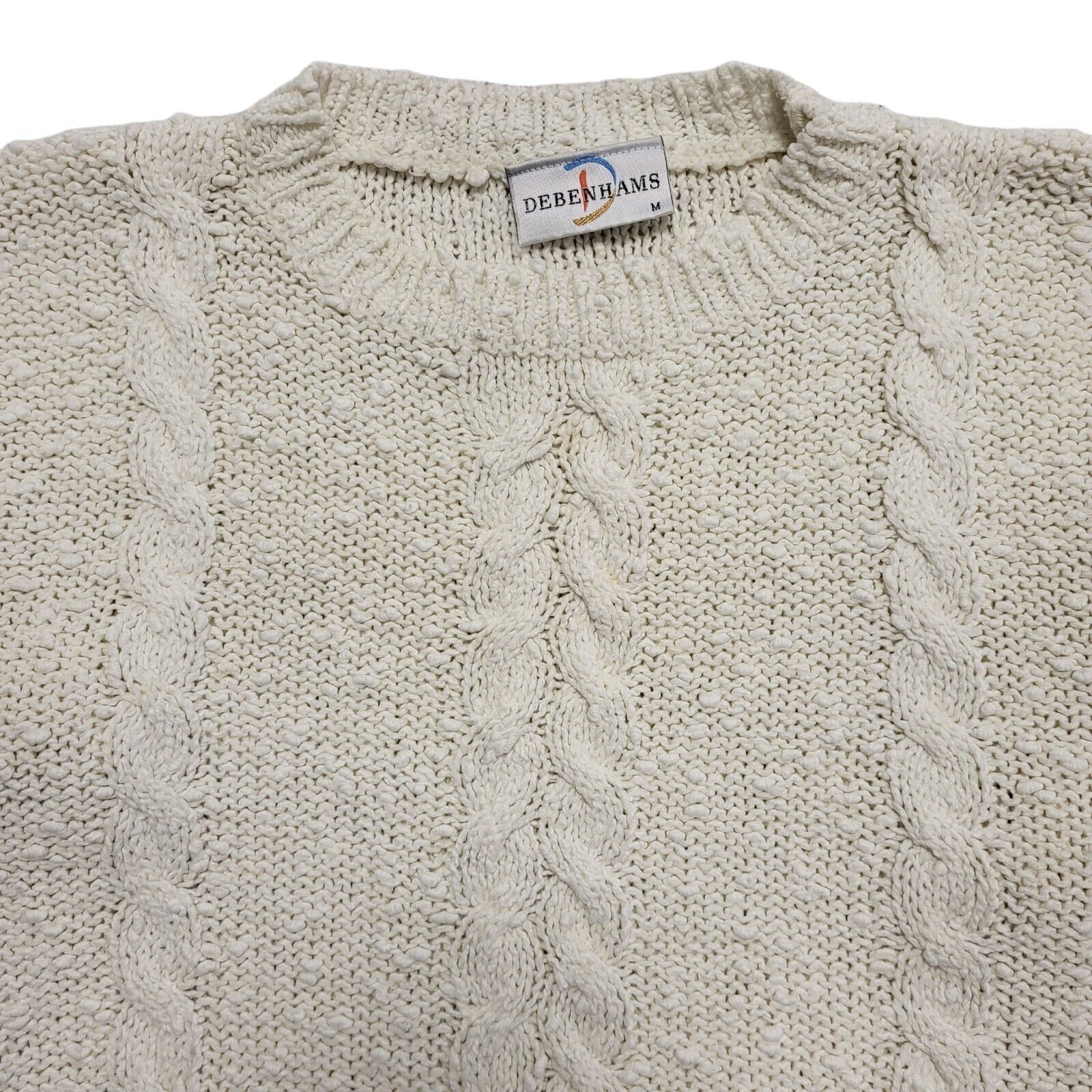 Debenhams 80s Vintage White Acrylic Round Neck Jumper Uk Women's Size Medium