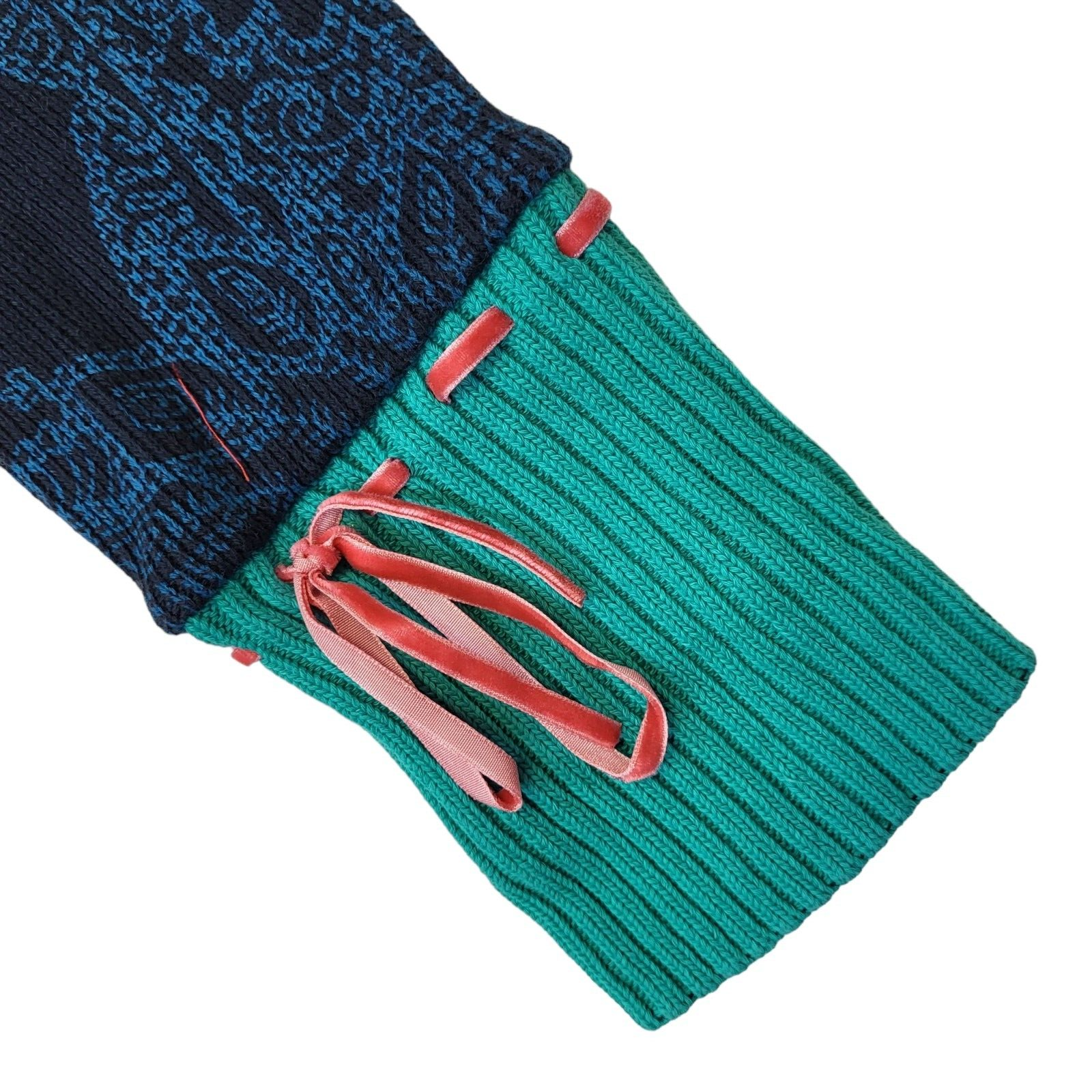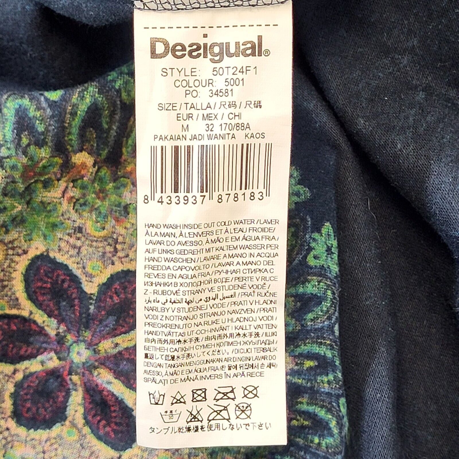 Desigual Y2K Navy Blue Floral V-Neck Jumper Vintage Women's Medium