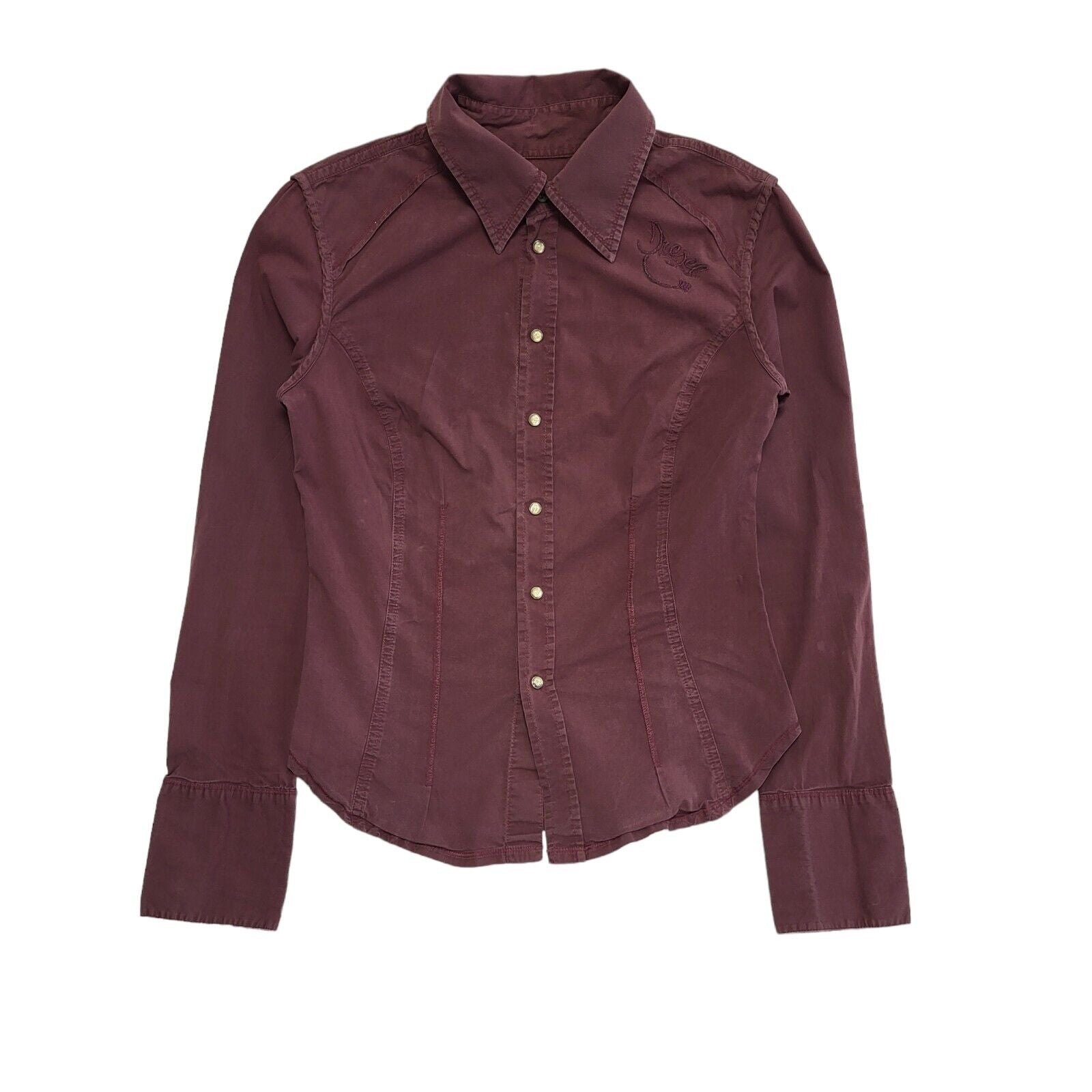 Diesel 90s Vintage Maroon Pearl Snap Long Sleeve Shirt Womens Size M