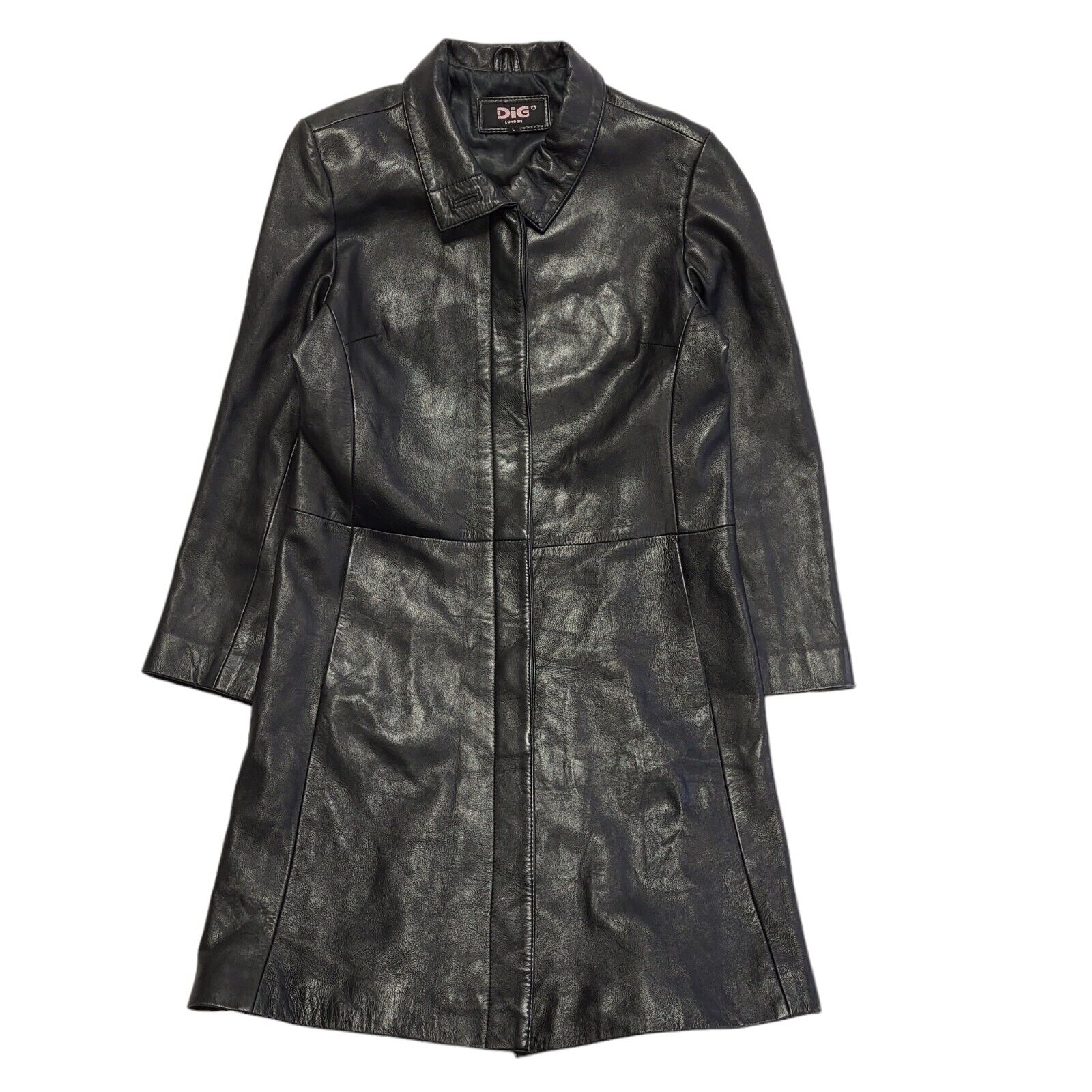 Dig Vintage 90's Long Black Leather Button Up Jacket Women's UK Size L