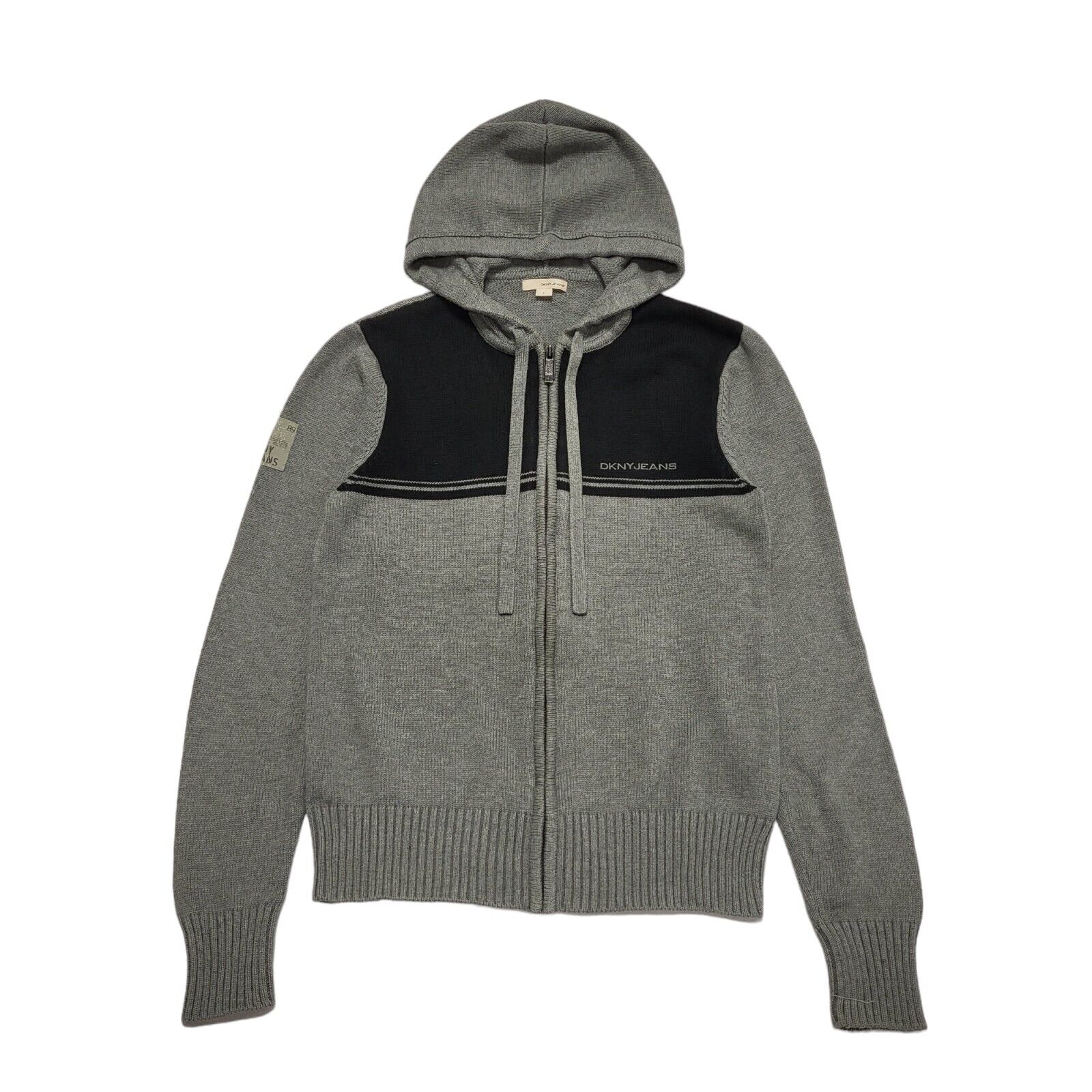 DKNY Vintage Y2K Full Zip Hooded Grey Cardigan Boys Size Large.