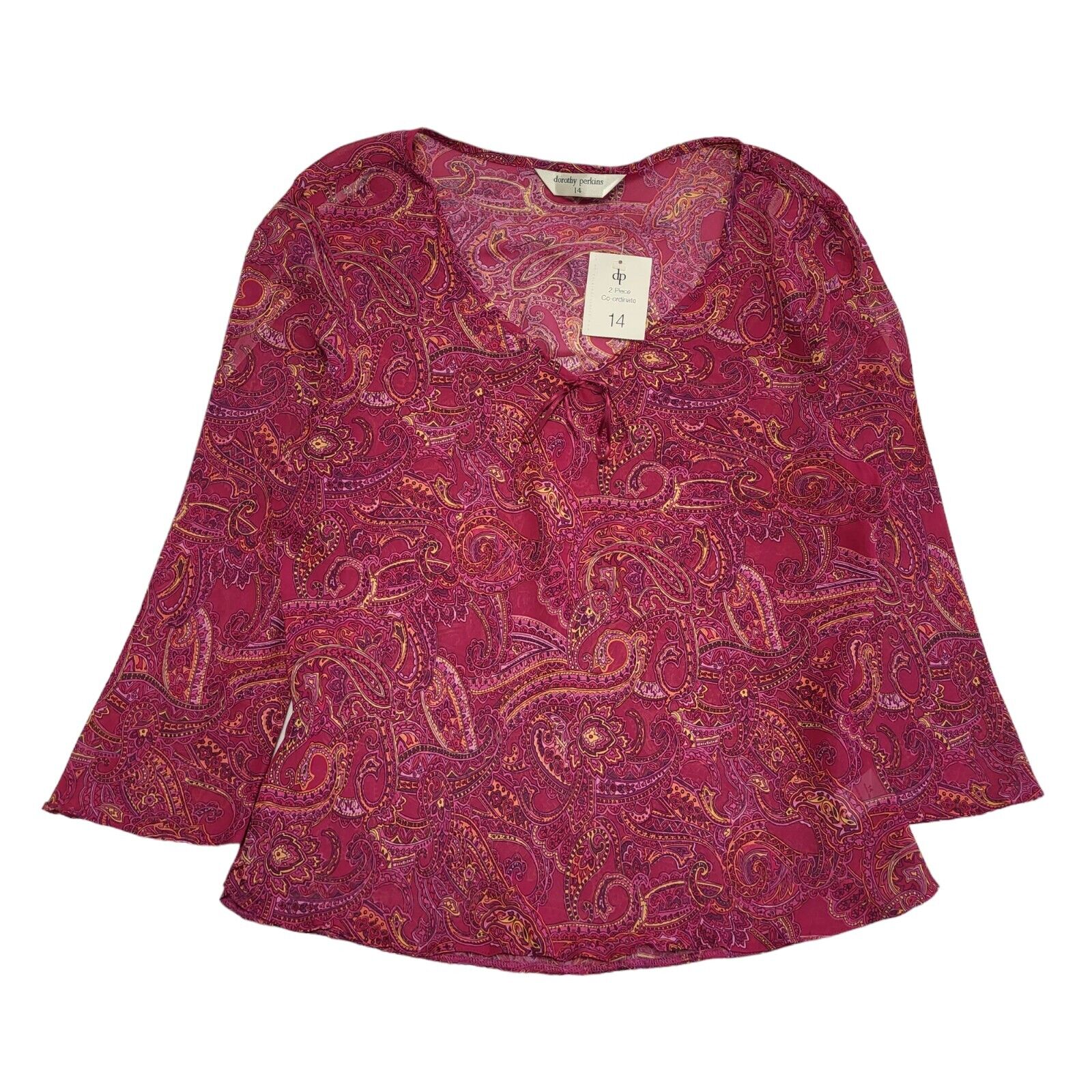 Dorothy Perkins Vintage 90s Pink Paisley 3/4 Sleeve Blouse BNWT Womens UK 14