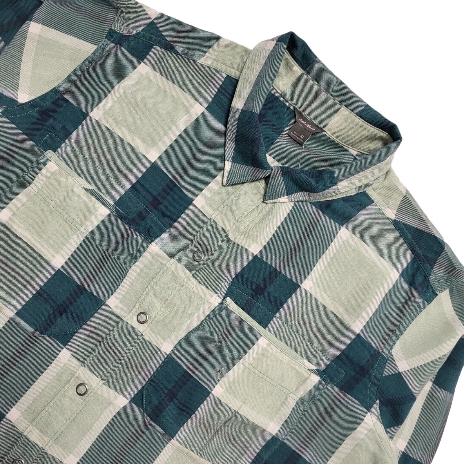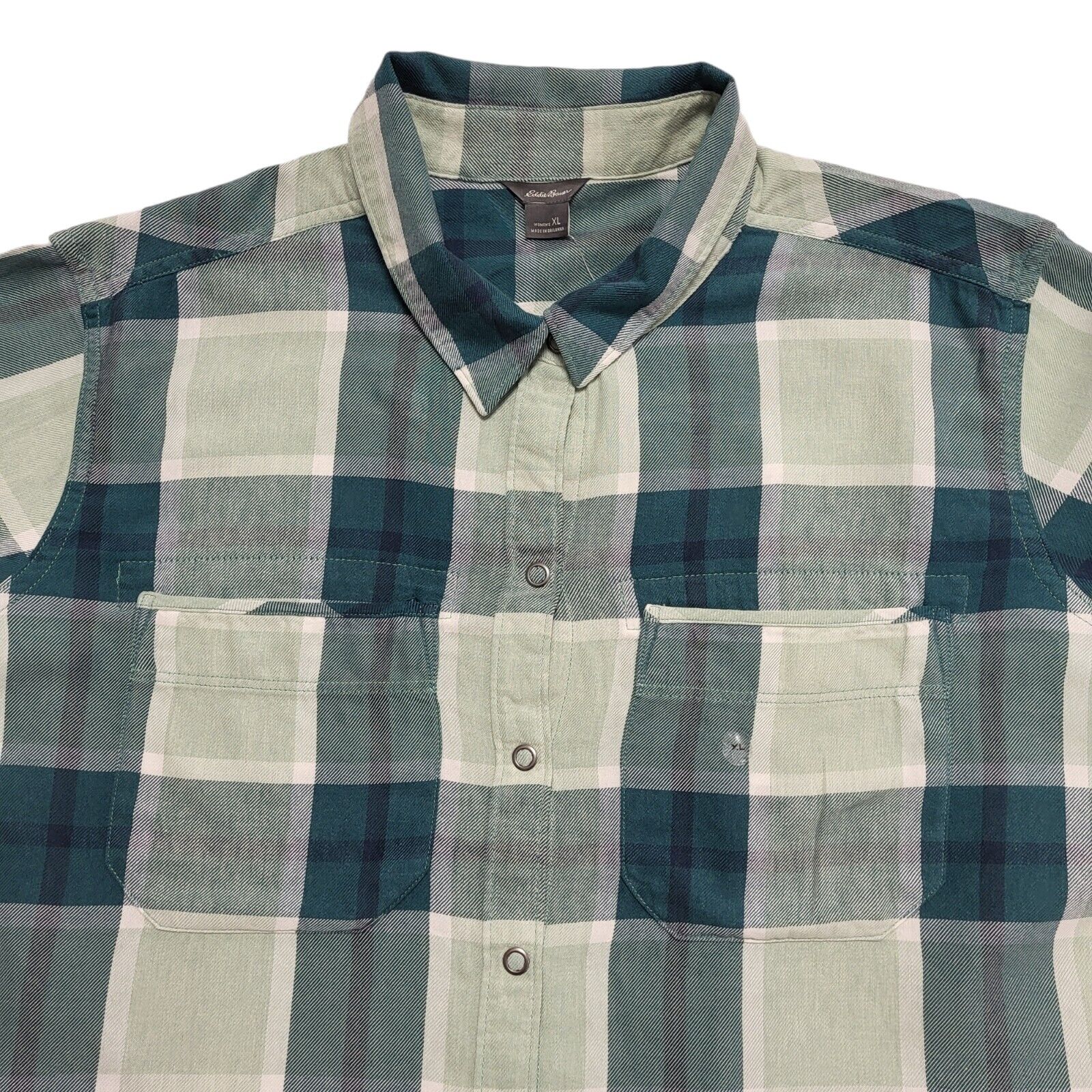 Eddie Bauer 90s Vintage Green Check Fremont Flannel Shirt Women's Size XL