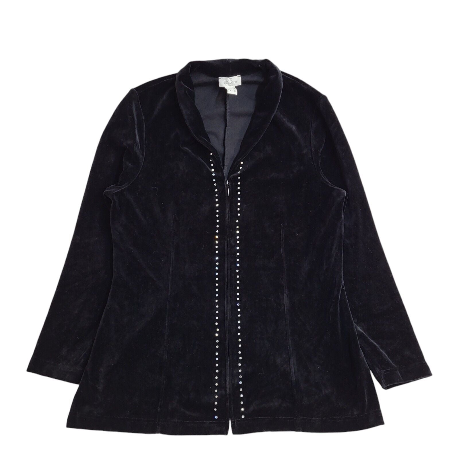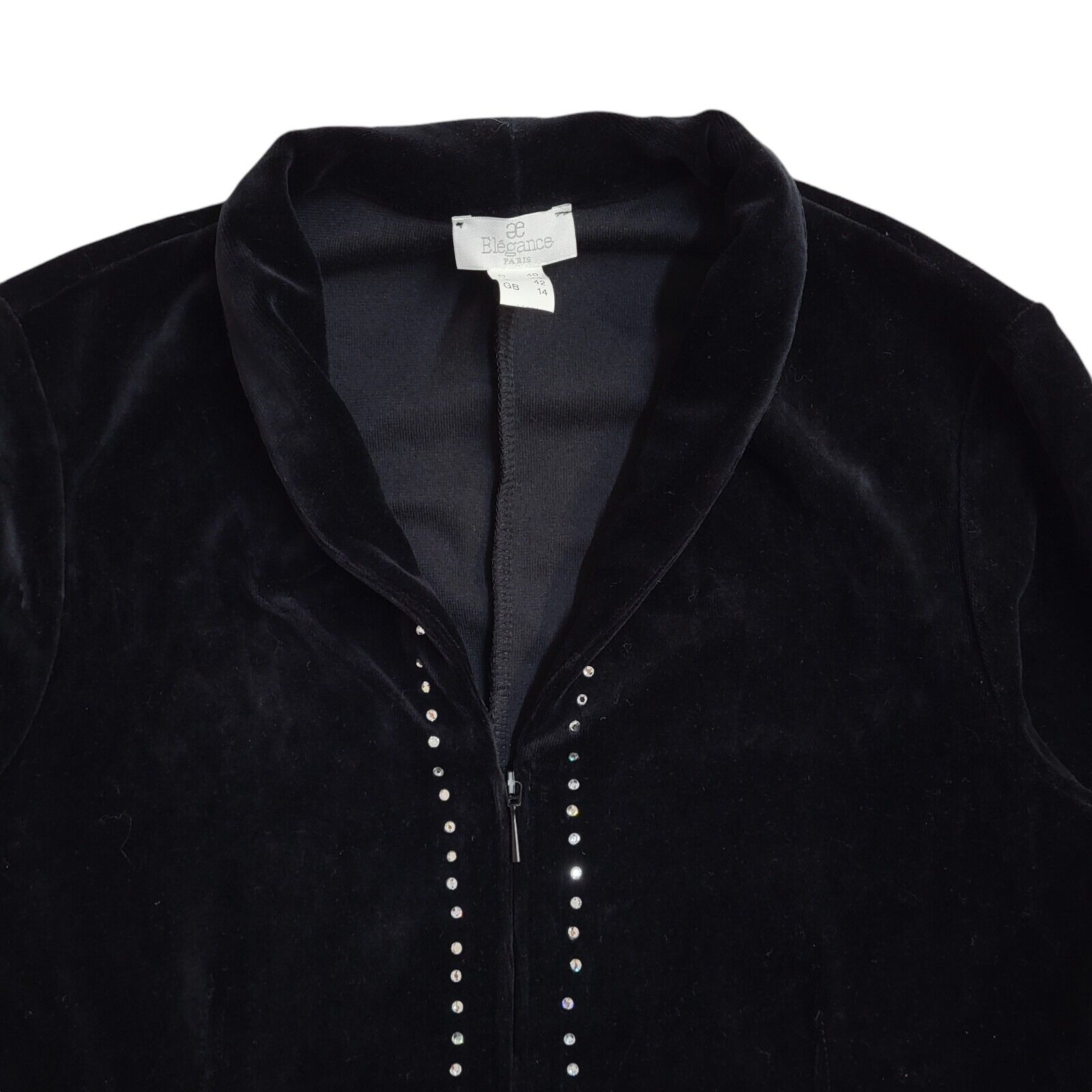 Elegance 90s Vintage Black Velvet Diamante Jacket UK Women's Size 14