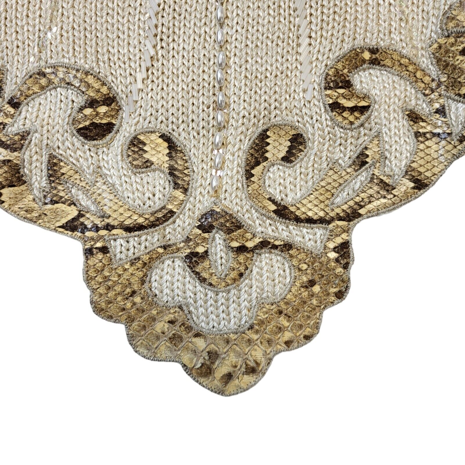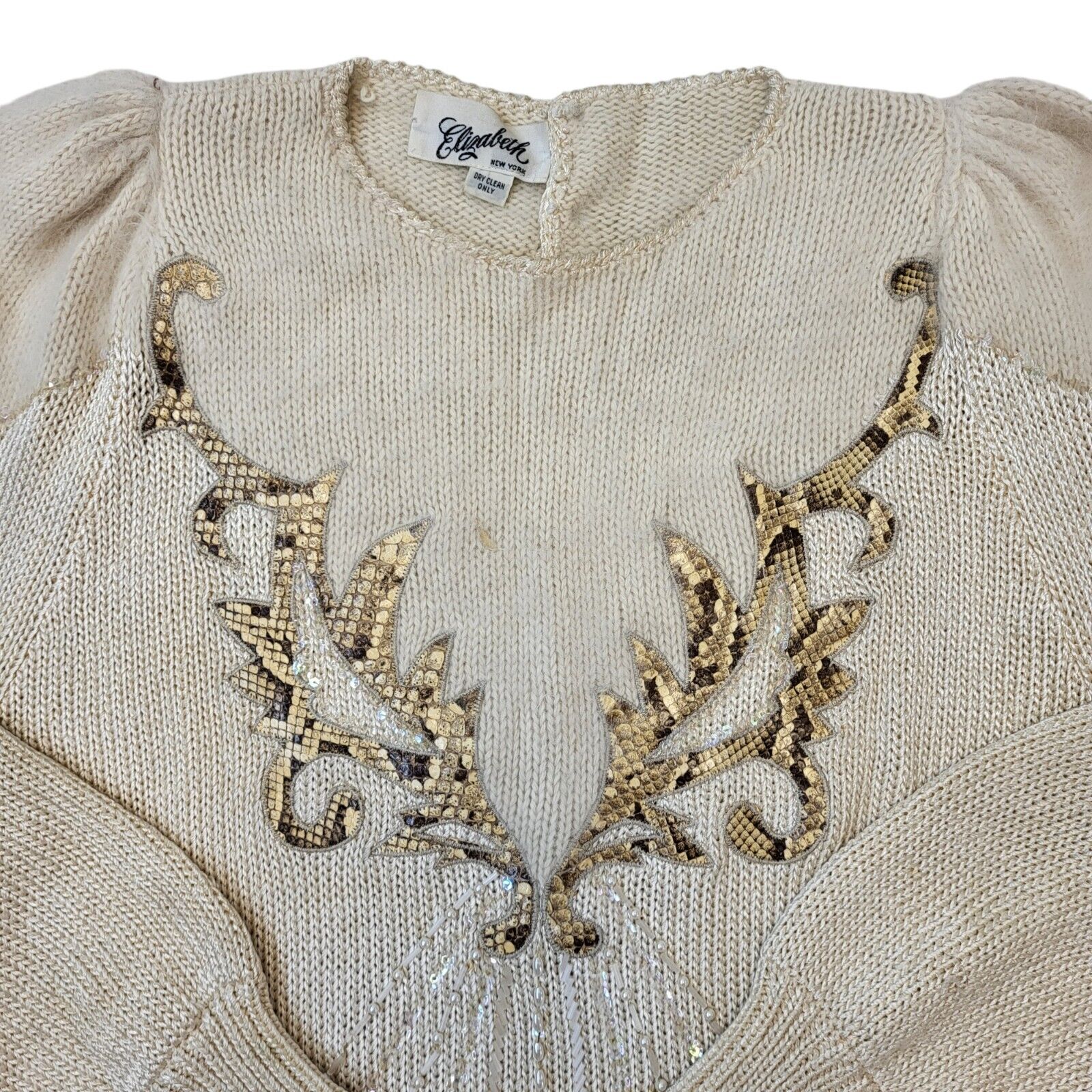Elizabeth 80s Vintage Beige Wool Jumper With Snake Print Details Women's Size M Eu 38.