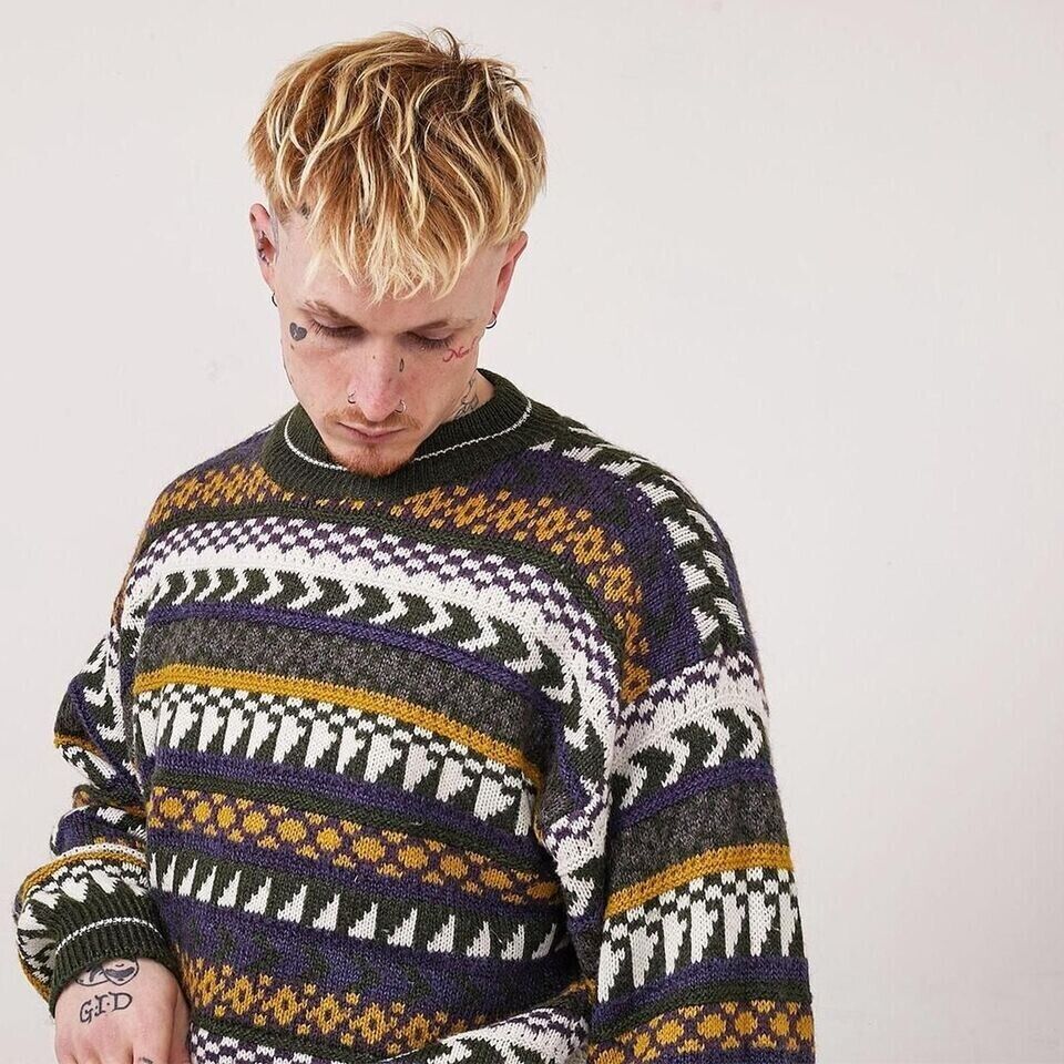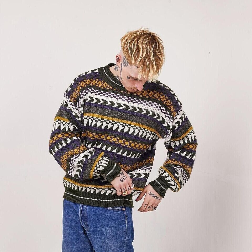 Elliott Bay Green White Vintage 90s Crew Neck Jumper Uk Men's Size M