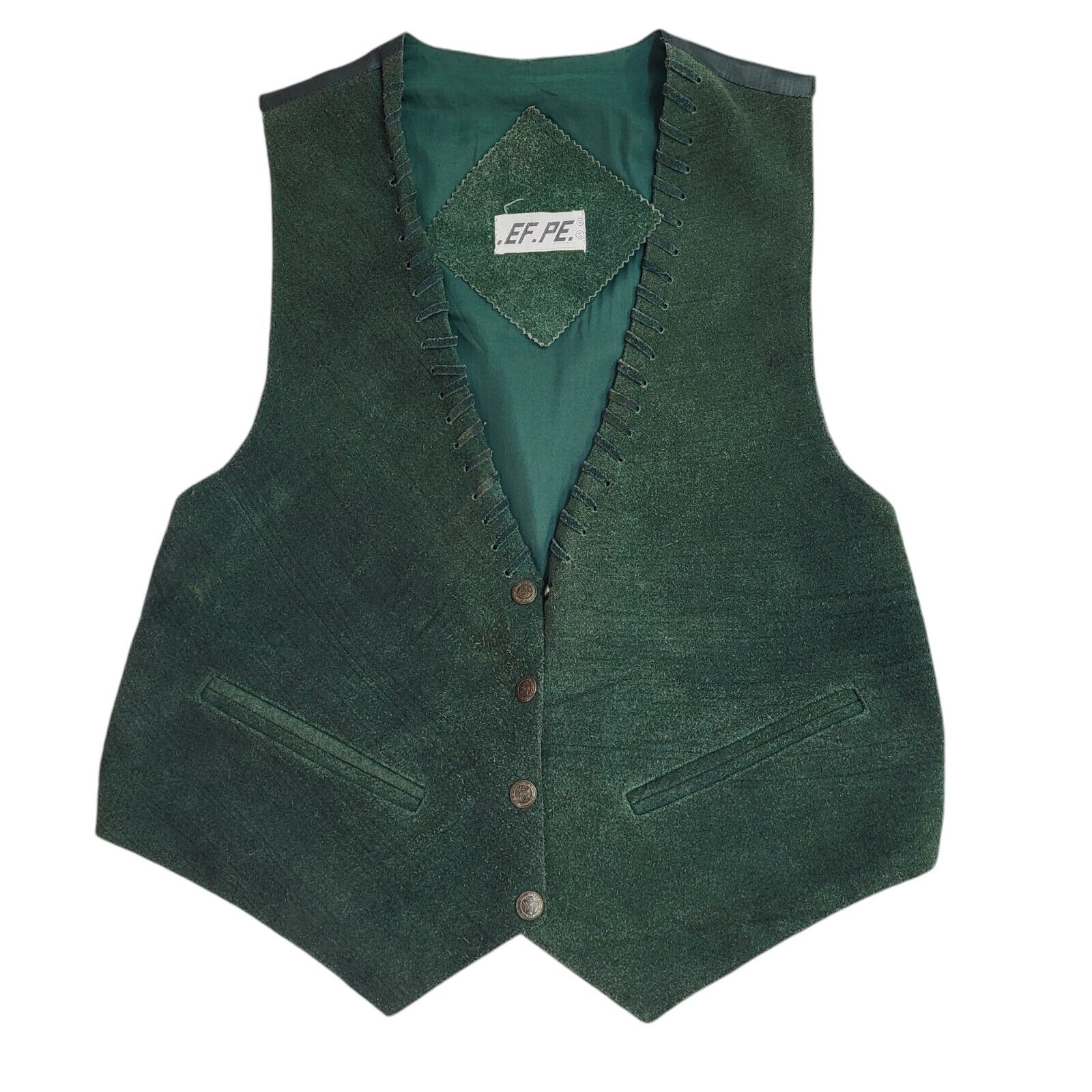 EP.PE Green 80s Suede Leather Snap Fasten Waistcoat Uk Women's Size 12