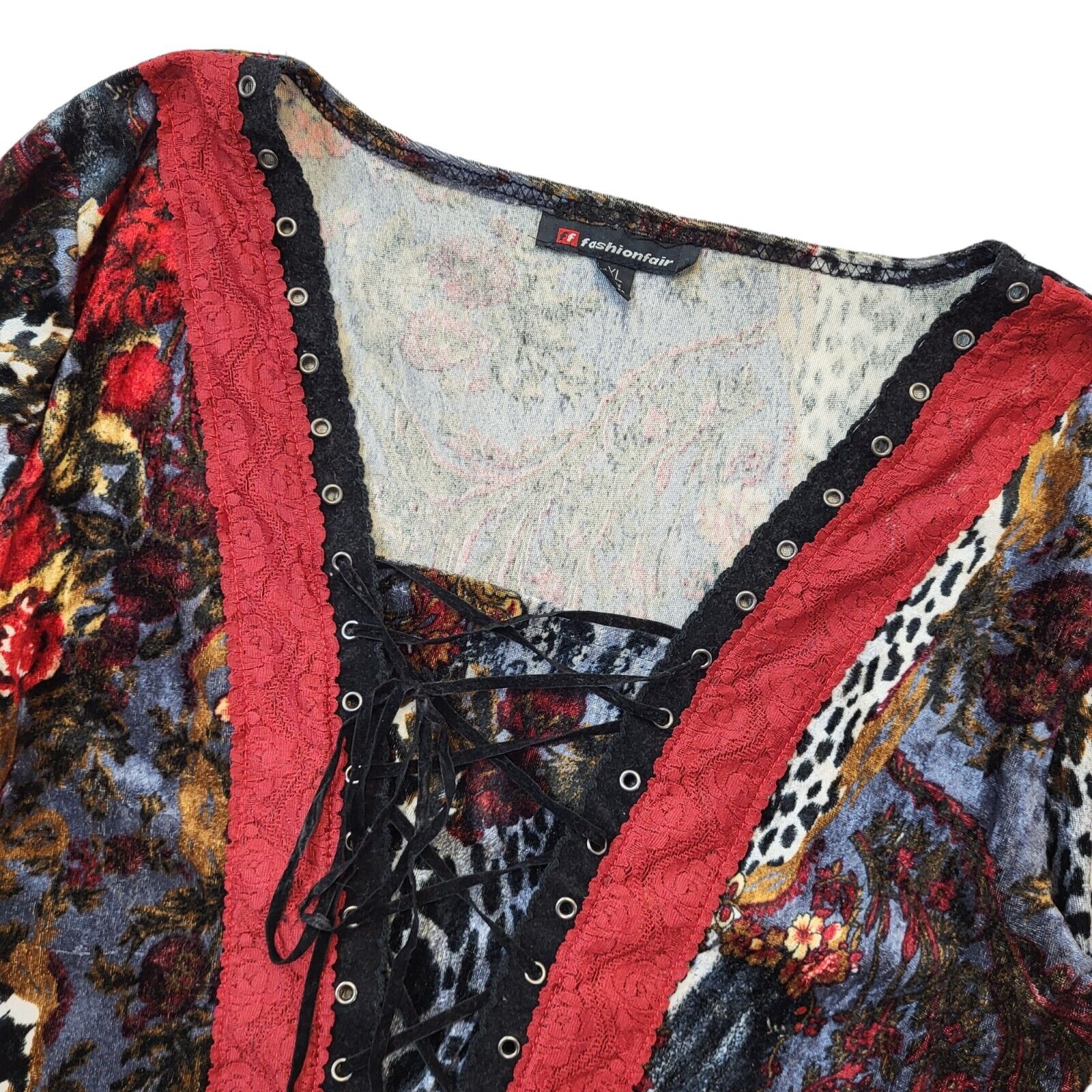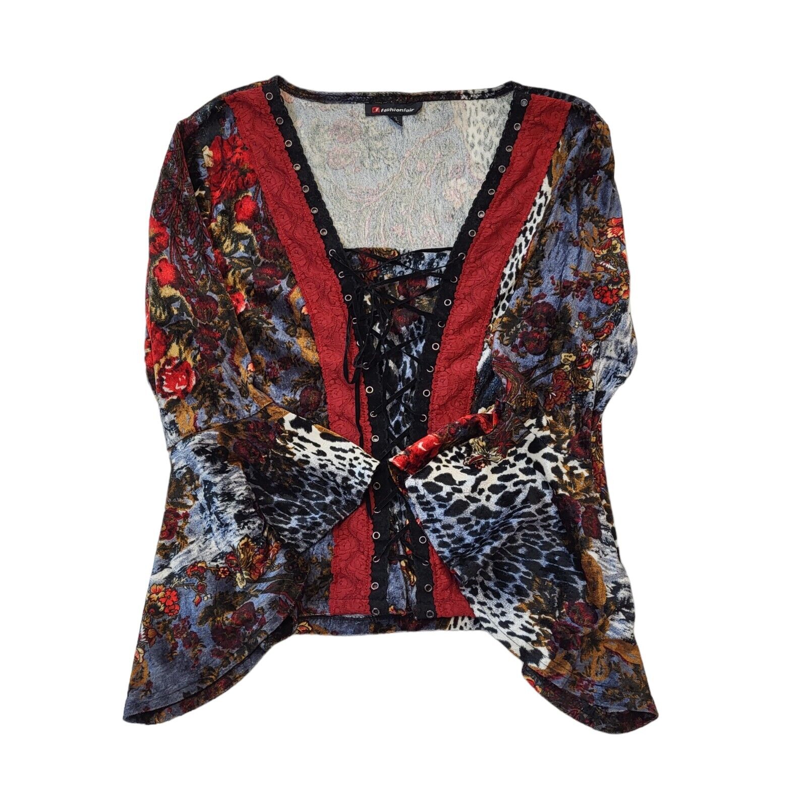 Fashion Flair Y2K Floral Lace Up Flared Sleeve Top Women's UK Size XL