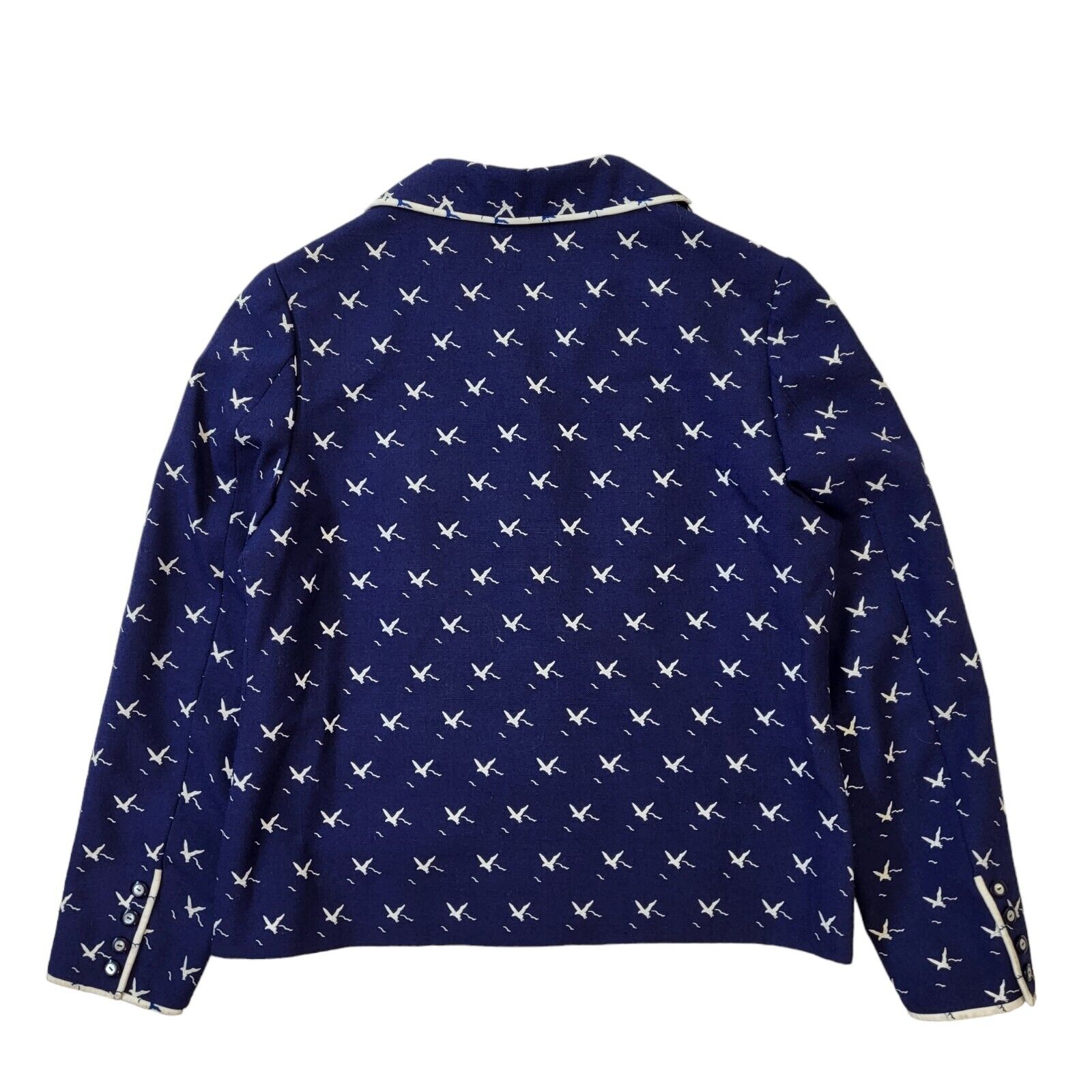 Felix 60s Vintage Blue White Birds Button Up Women's Jacket Size 10.