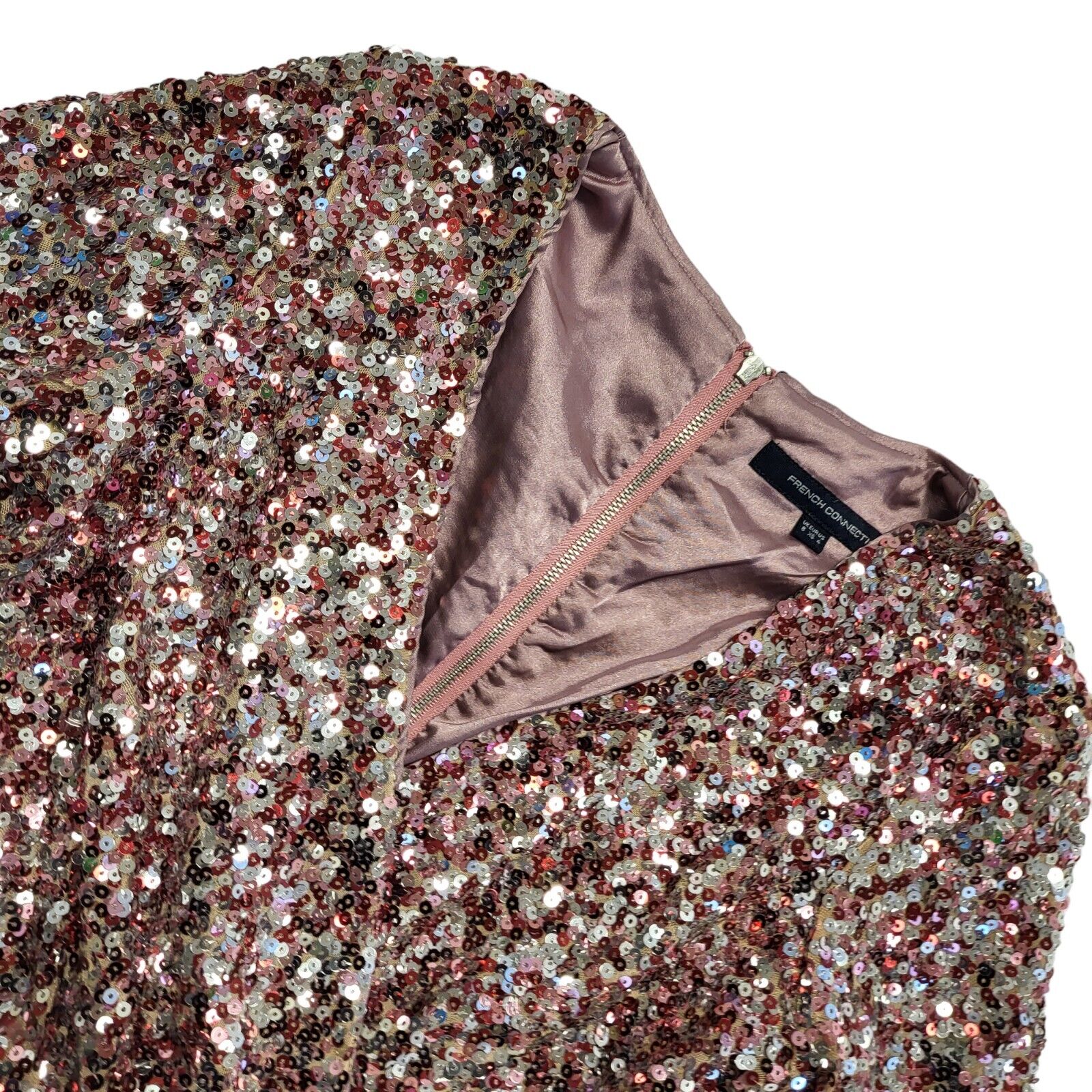 French Connection Y2K Pink Sequin Evening Dress Womens Uk Size 8.