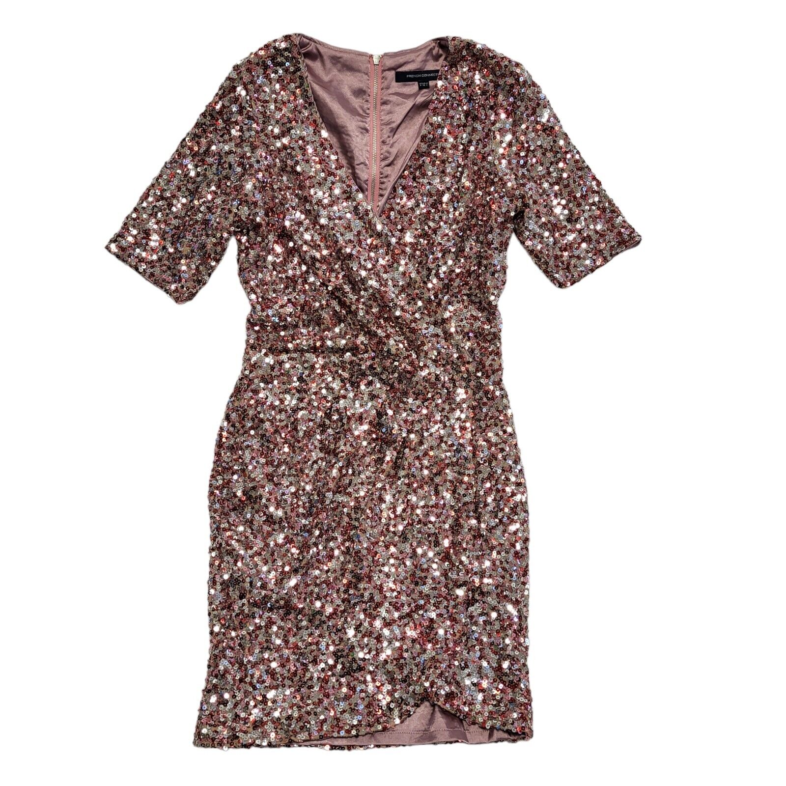 French Connection Y2K Pink Sequin Evening Dress Womens Uk Size 8