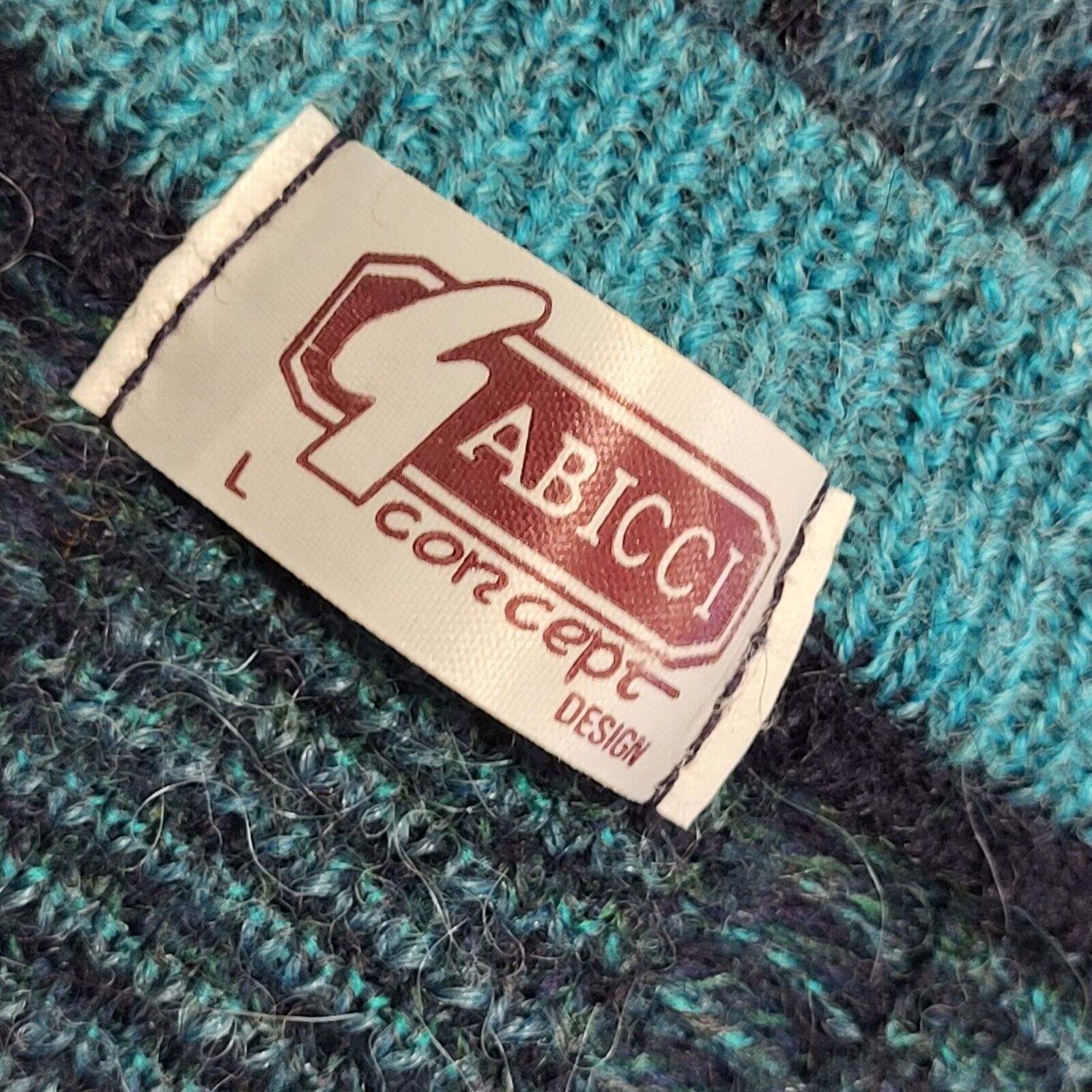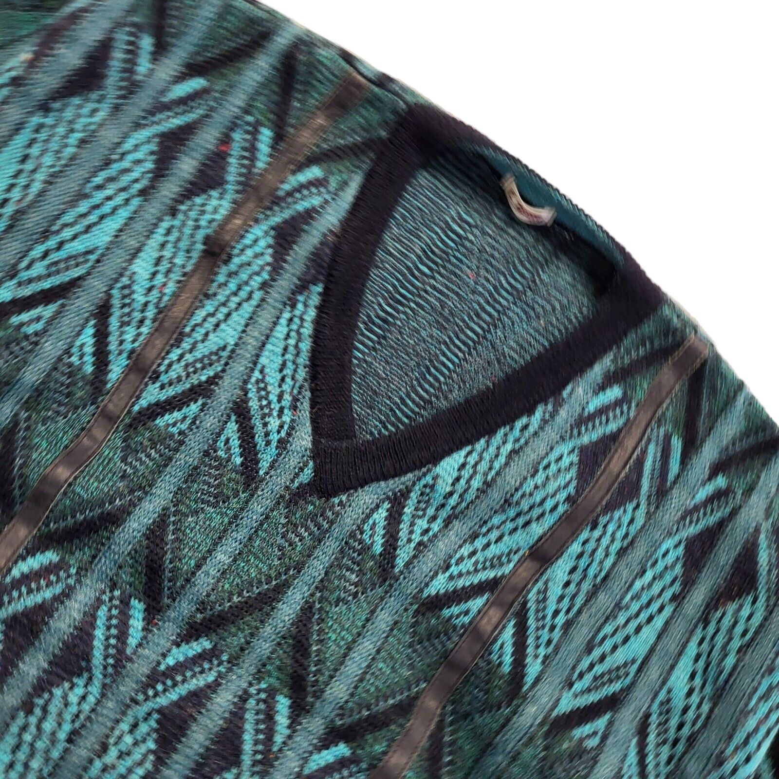 Gabicci Vintage 80s Blue Geometric V-Neck Jumper Men's UK L