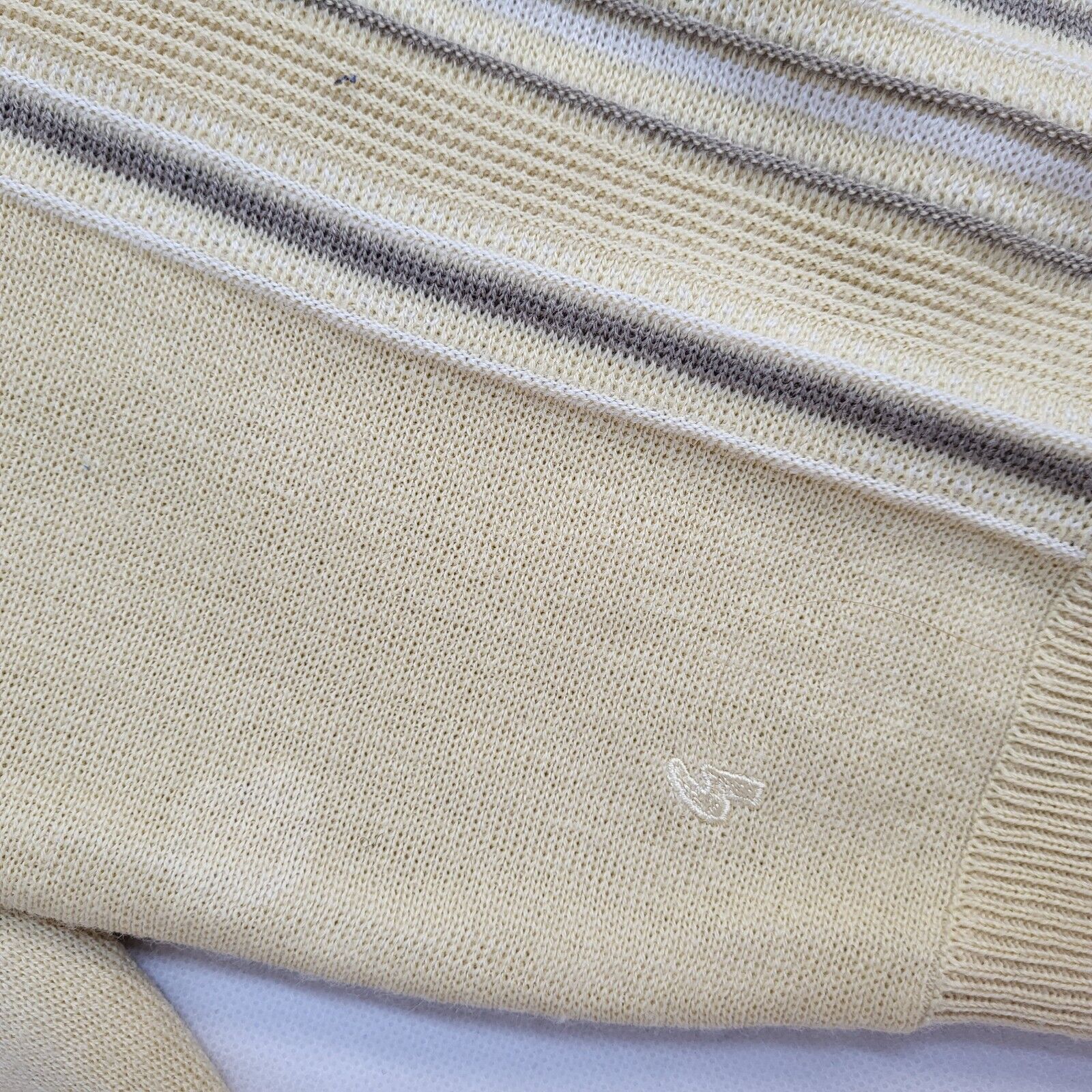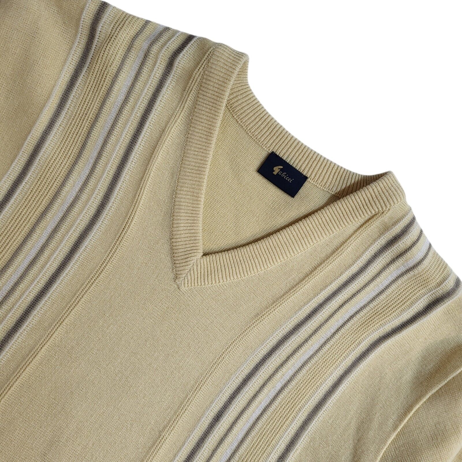 Gabicci Yellow Striped V-Neck Vintage 90's Jumper Men's UK M