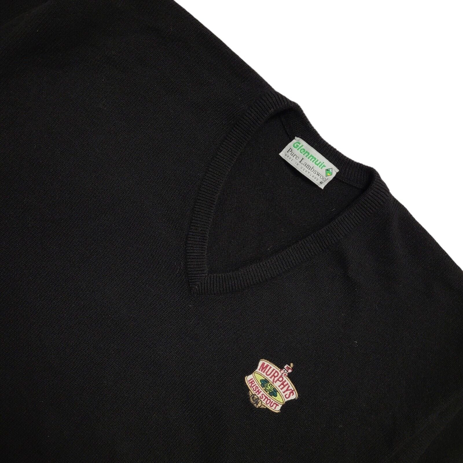 Glenmuir 90's Jumper Black Irish Stout Argyle V-Neck Long Sleeve Mens UK XL
