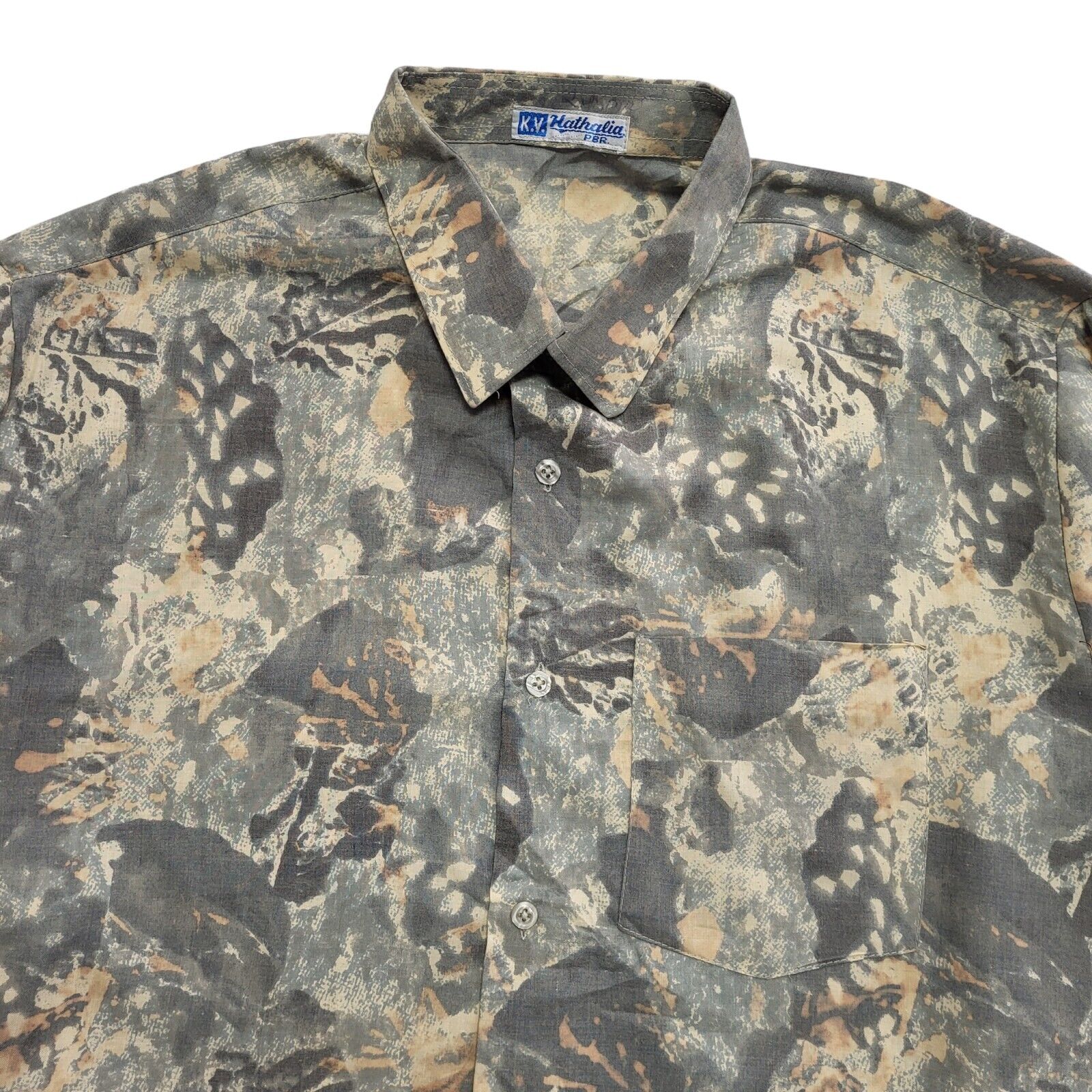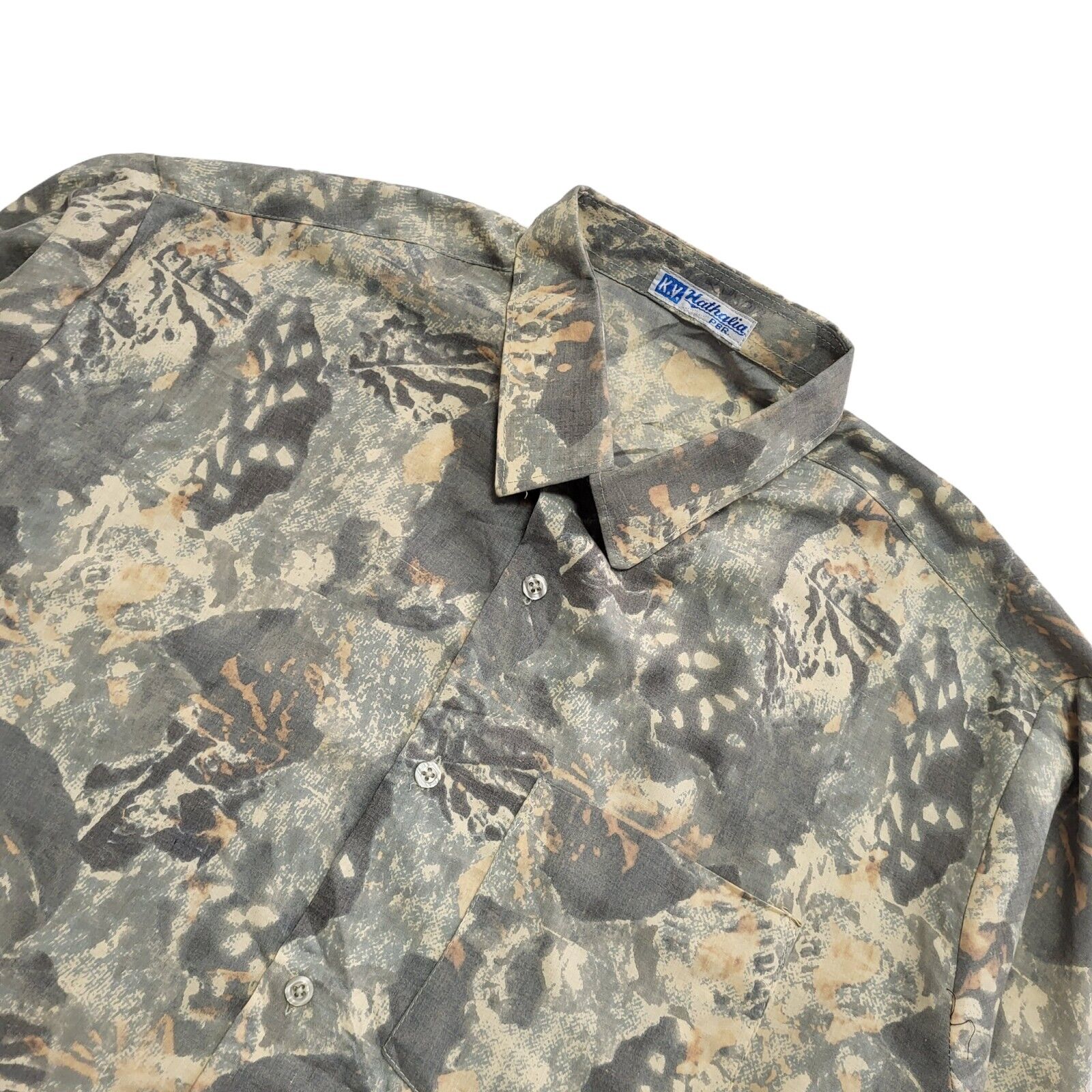 Hathalia 90's Grey & beige Abstract Long Sleeve Shirt Uk Men's UK XL