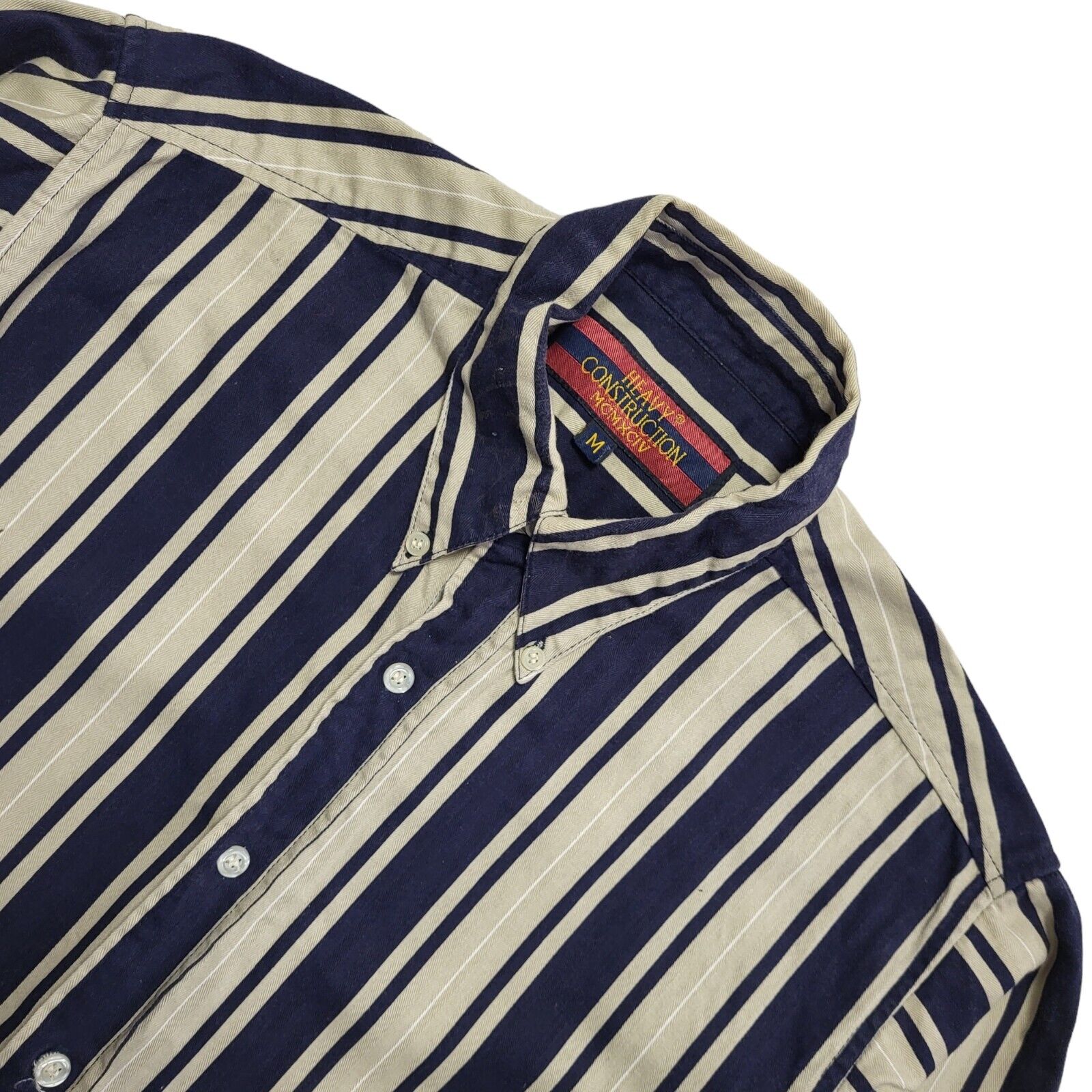 Heavy Construction 90's Blue & Beige Striped Long Sleeve Shirt Men's UK Size XL