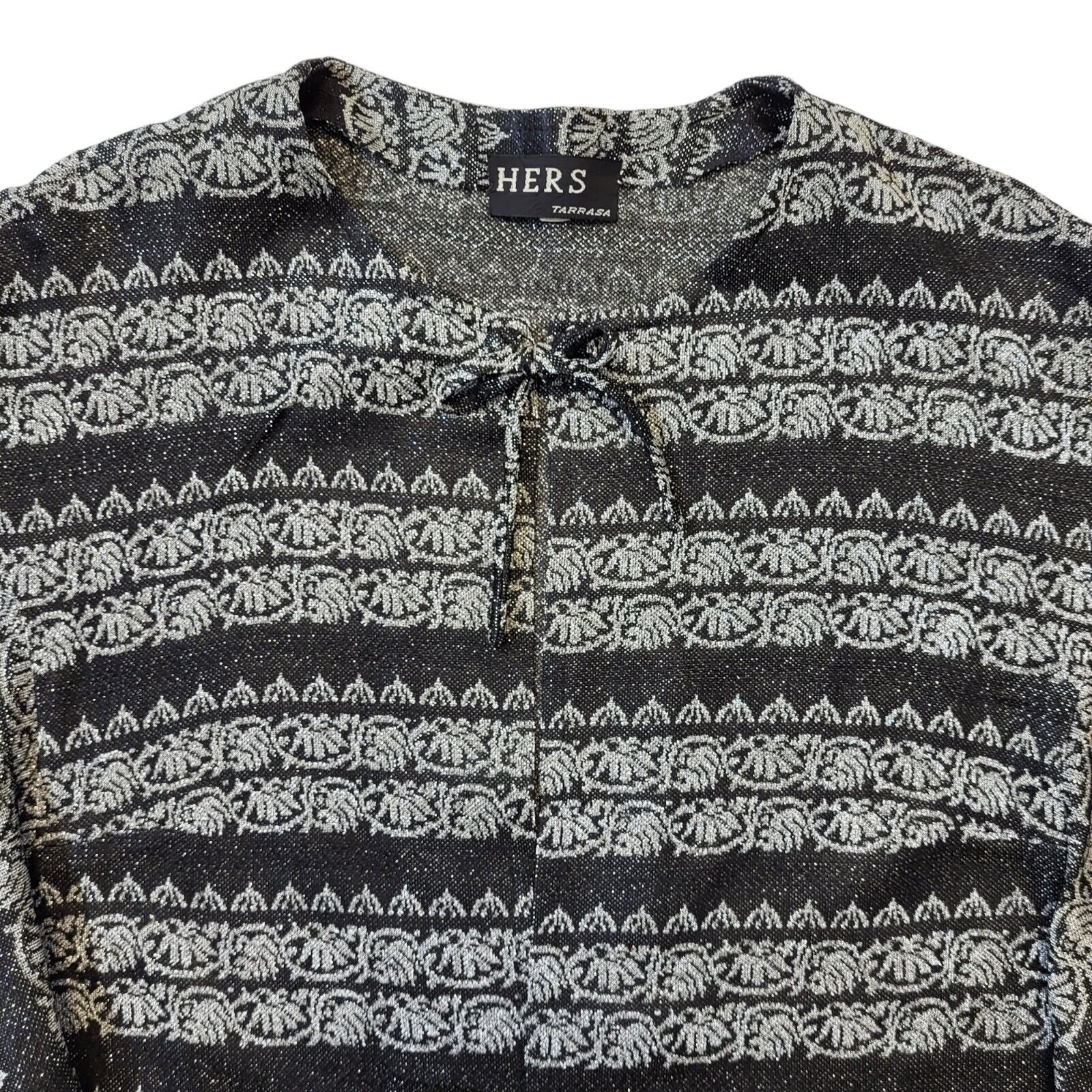 Hers 70s Vintage Black & Grey Sparkly Party Top Women's Size 16.